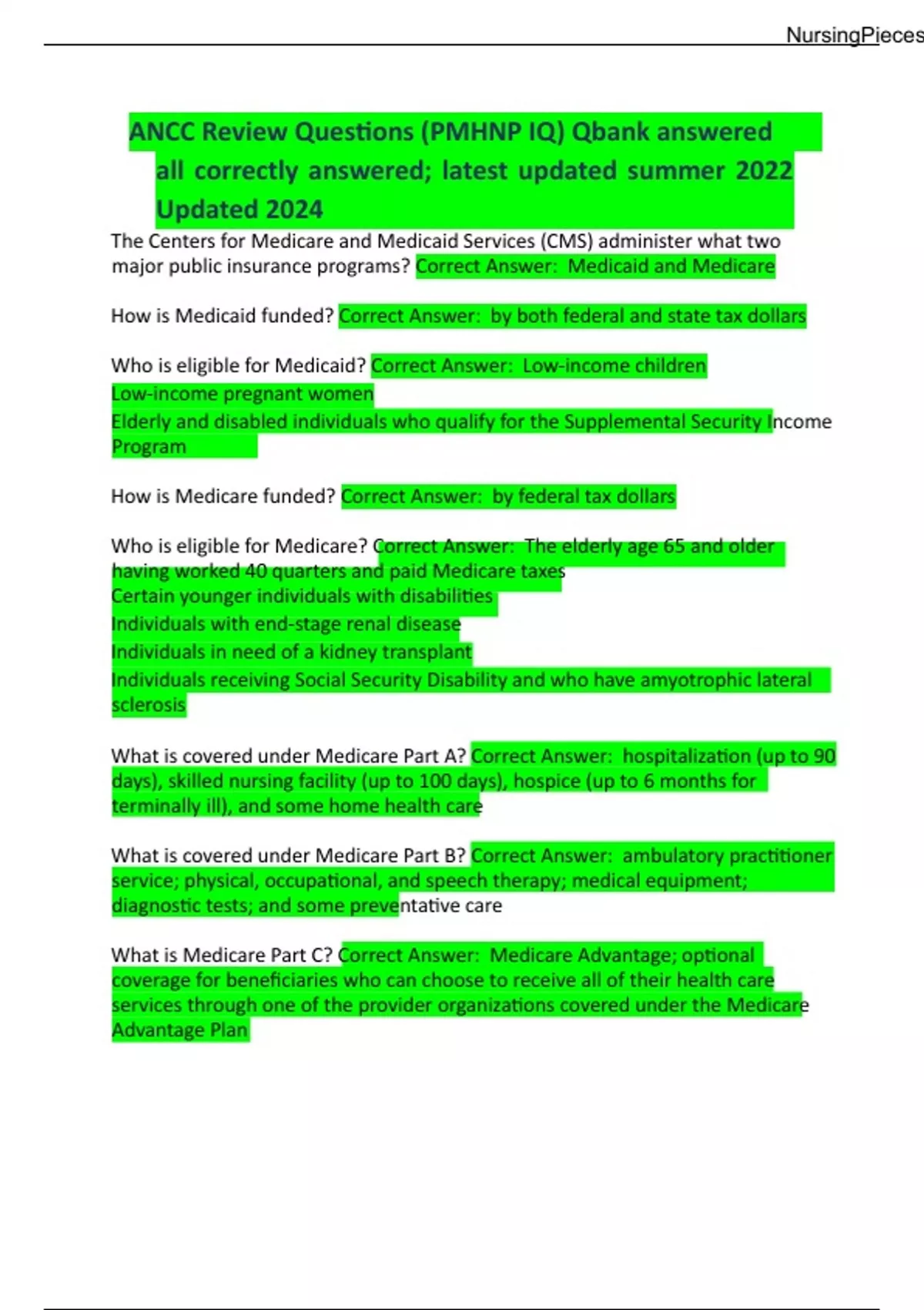 ANCC Review Questions (PMHNP IQ) Qbank answered all correctly answered; latest updated summer 2022