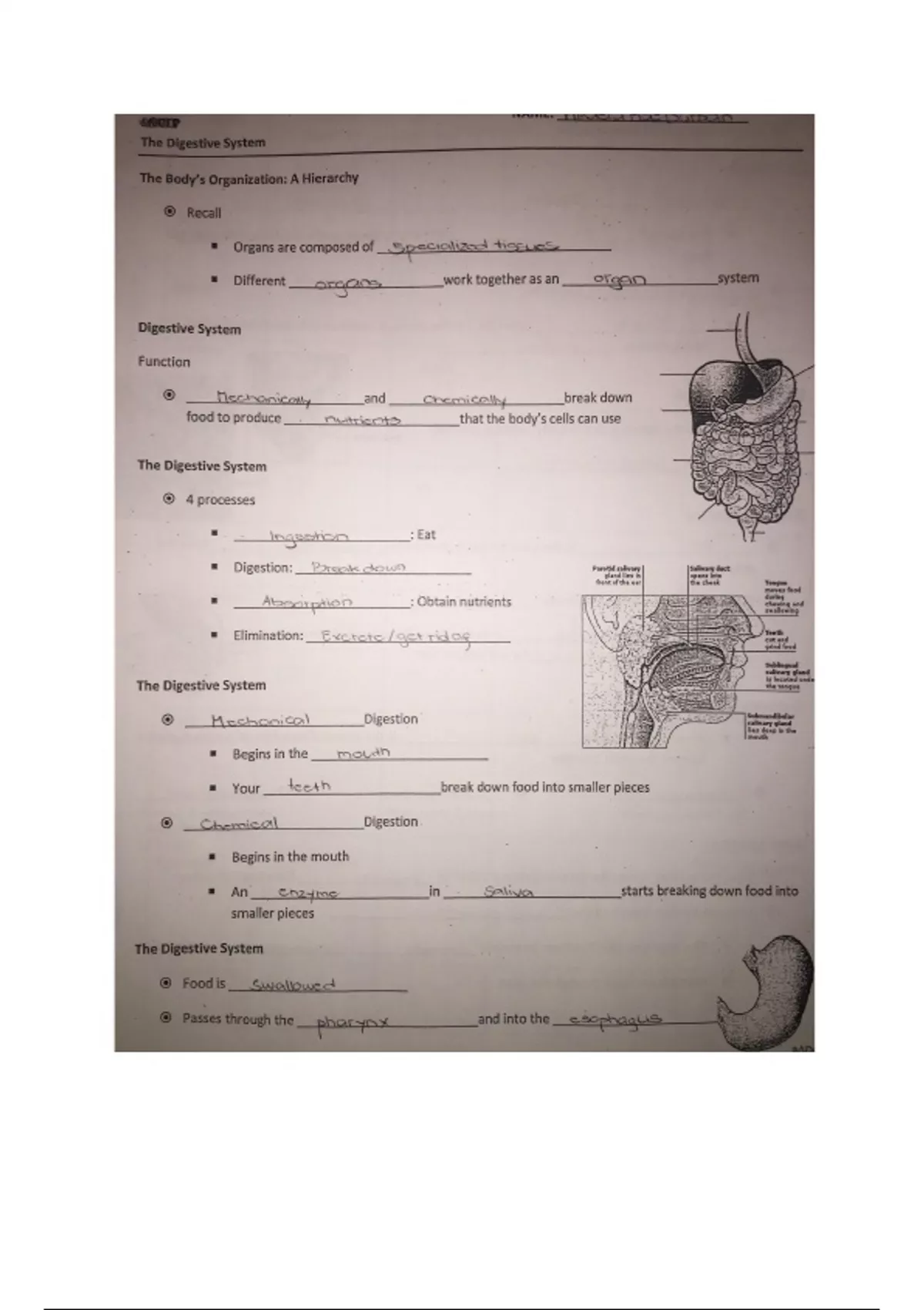 The function of the digestive system is to mechanically and chemically break down food to produce nutrients that the body’s cells can use. The file contains information/class notes about the digestive system.