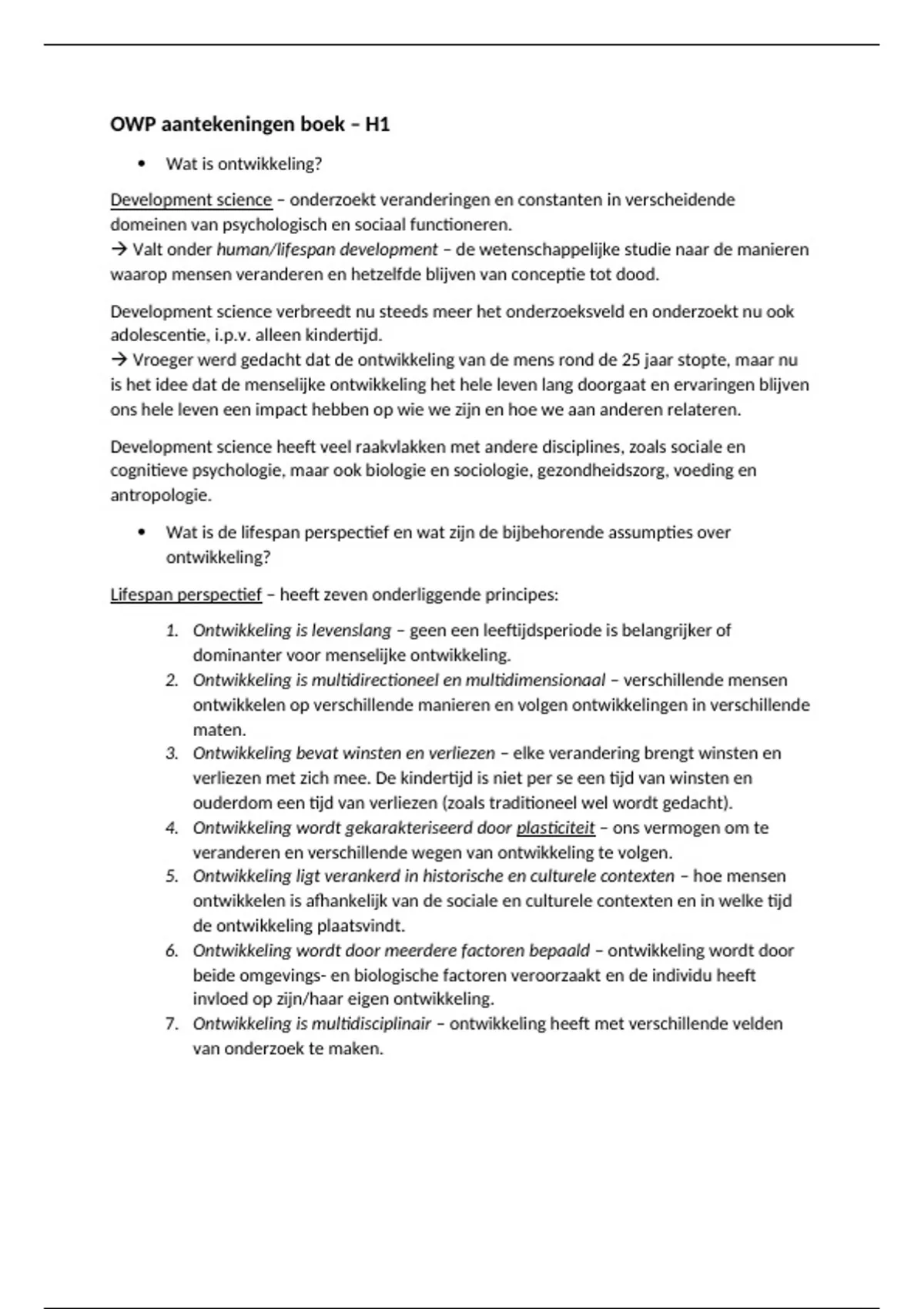 Lifespan perspectief – heeft zeven onderliggende principes: