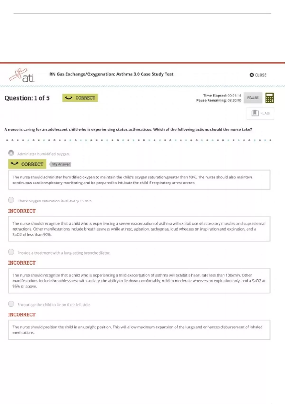 ATI RN Gas Exchange:Oxygenation- Asthma 3.0 Case Study Test