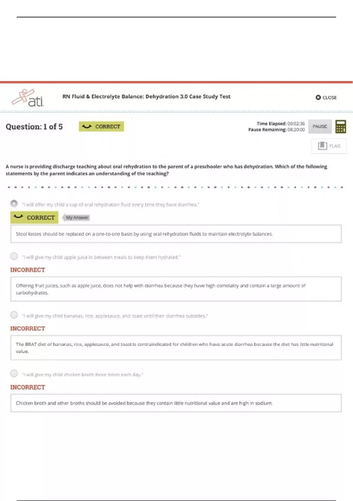ATI RN Fluid &Electrolyte Balance- Dehydration 3.0 Case Study Test • CORRECT