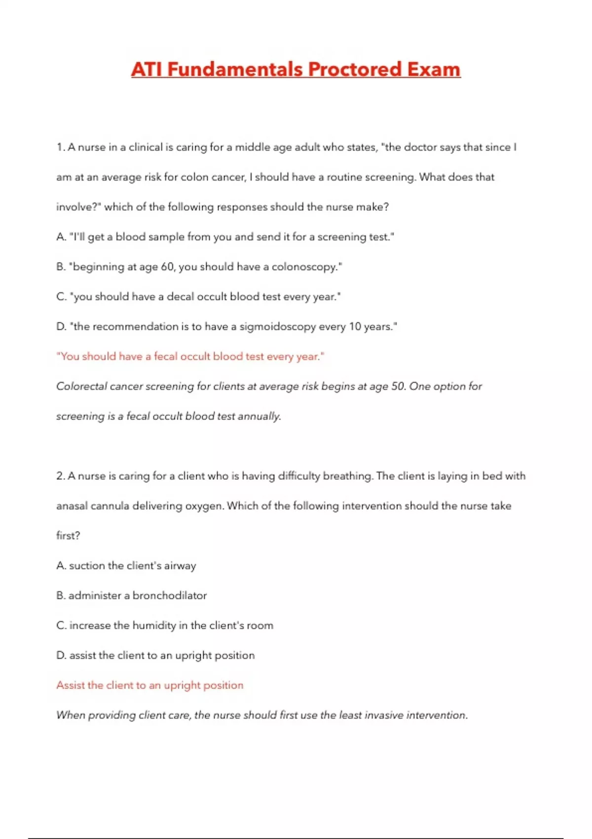 ati fundamentals proctored exam