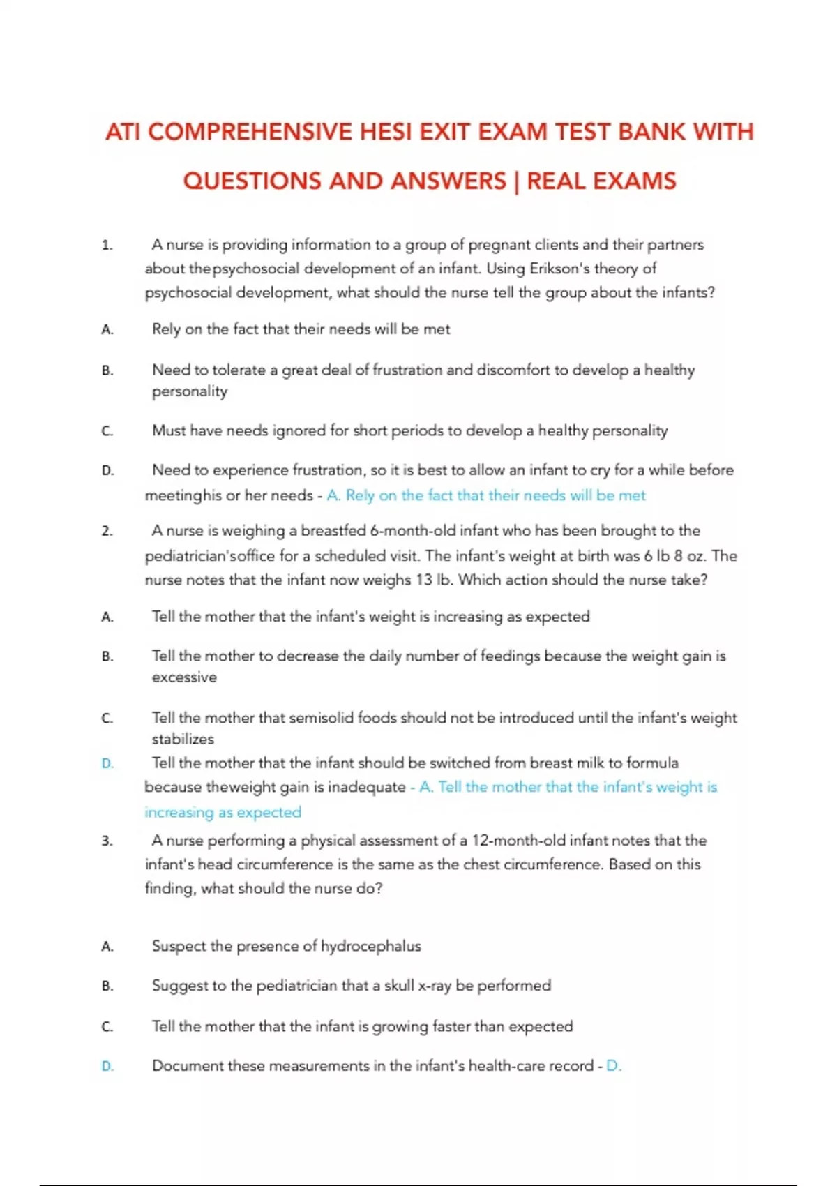ATI COMPREHENSIVE HESI EXIT EXAM TEST BANK WITH QUESTIONS AND ANSWERS REAL EXAMS