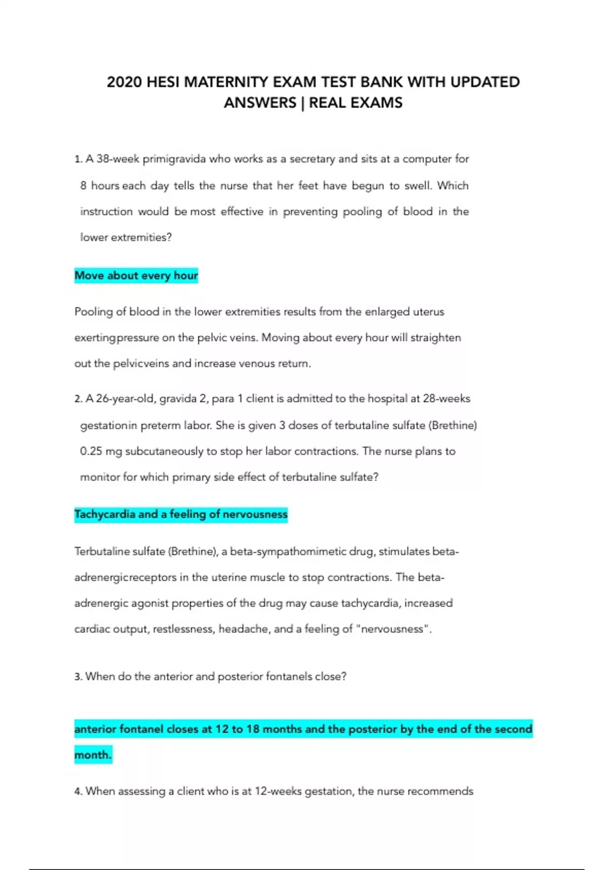 2020 HESI MATERNITY EXAM TEST BANK WITH UPDATED ANSWERS REAL EXAMS