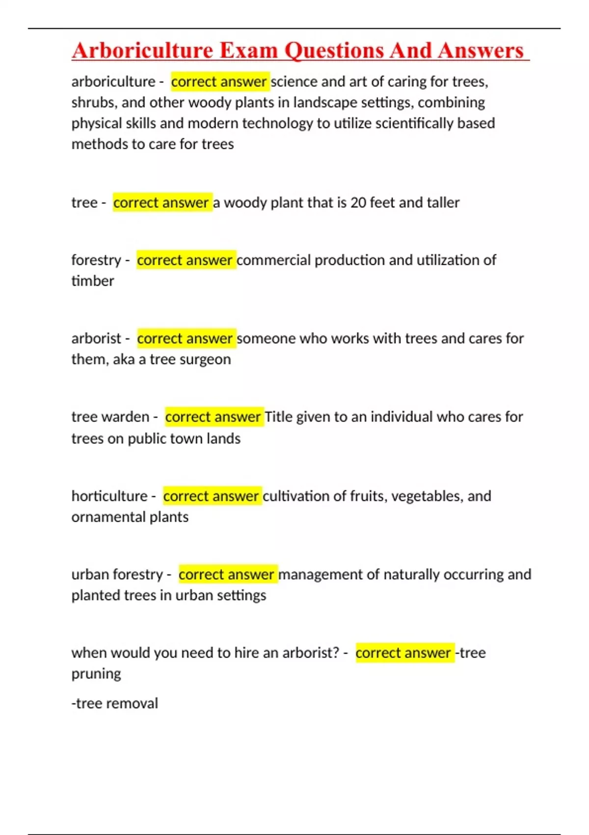 Arboriculture Exam Questions And Answers