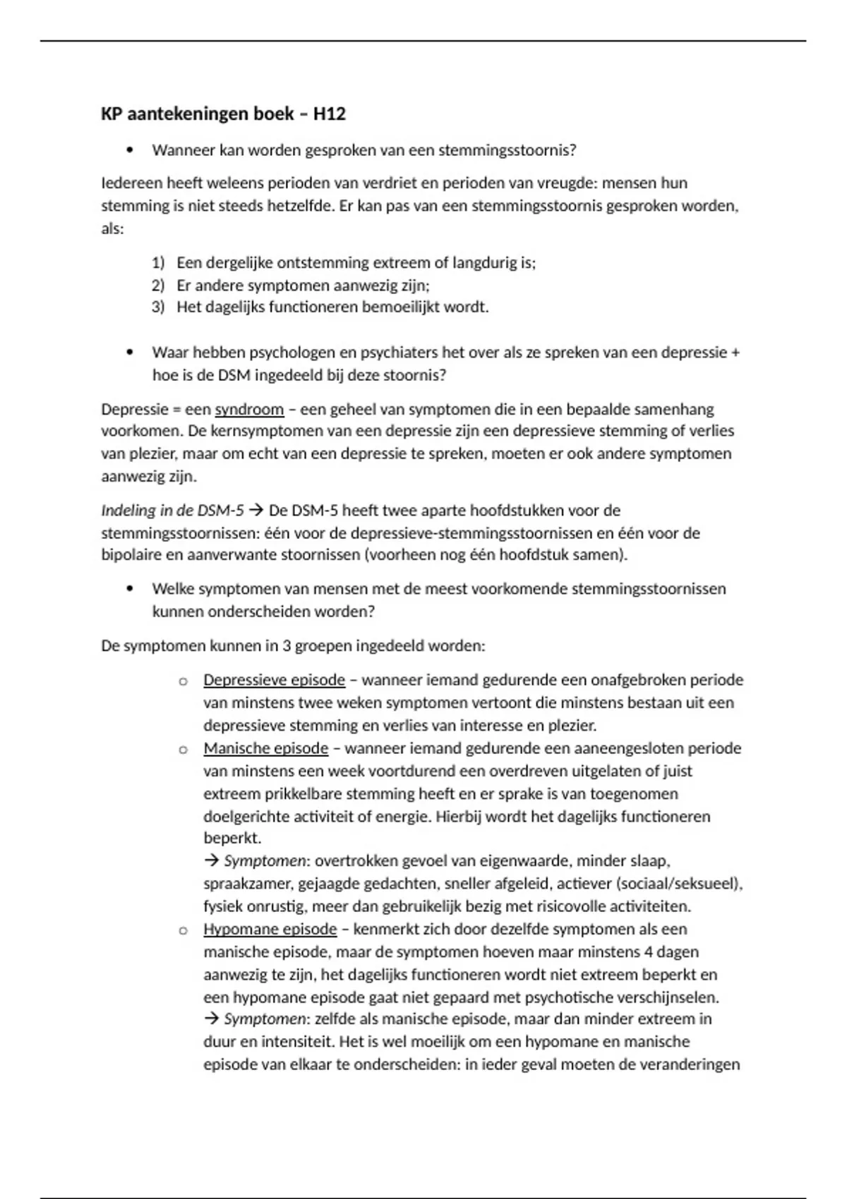 o Depressieve episode – wanneer iemand gedurende een onafgebroken periode