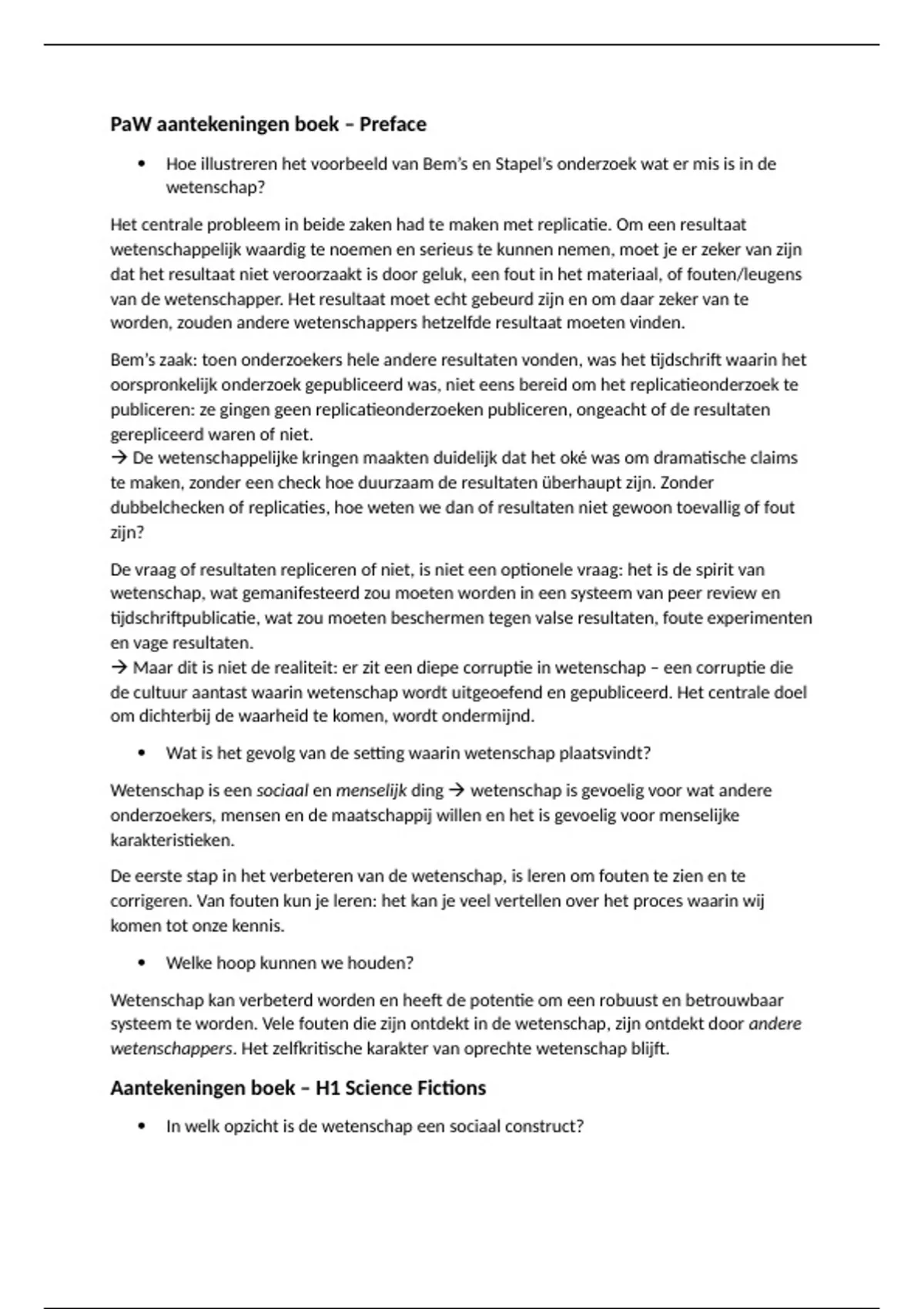Dit is een Nederlandse samenvatting van de het artikel ‘An Introduction to the philosophy of science’ van Chris Paffen en de Preface, H1, H2 en H4 t/m H8 van het boek ‘Science Fictions’ van Stuart Richie (EAN: 9781529110647), die gebruikt worden bij het eerstejaars vak Psychologie als Wetenschap van psychologie aan de universiteit Utrecht. Met hulp van deze samenvatting heb ik een 7.5 gehaald voor het tentamen. Dit is een uitgebreide samenvatting waarin alles wat in het boek staat terugkomt, maar in een begrijpelijke, verkorte vorm. Deze samenvatting bevat alleen informatie uit het boek, niet informatie over testtheorie (gebruik de hoorcolleges).