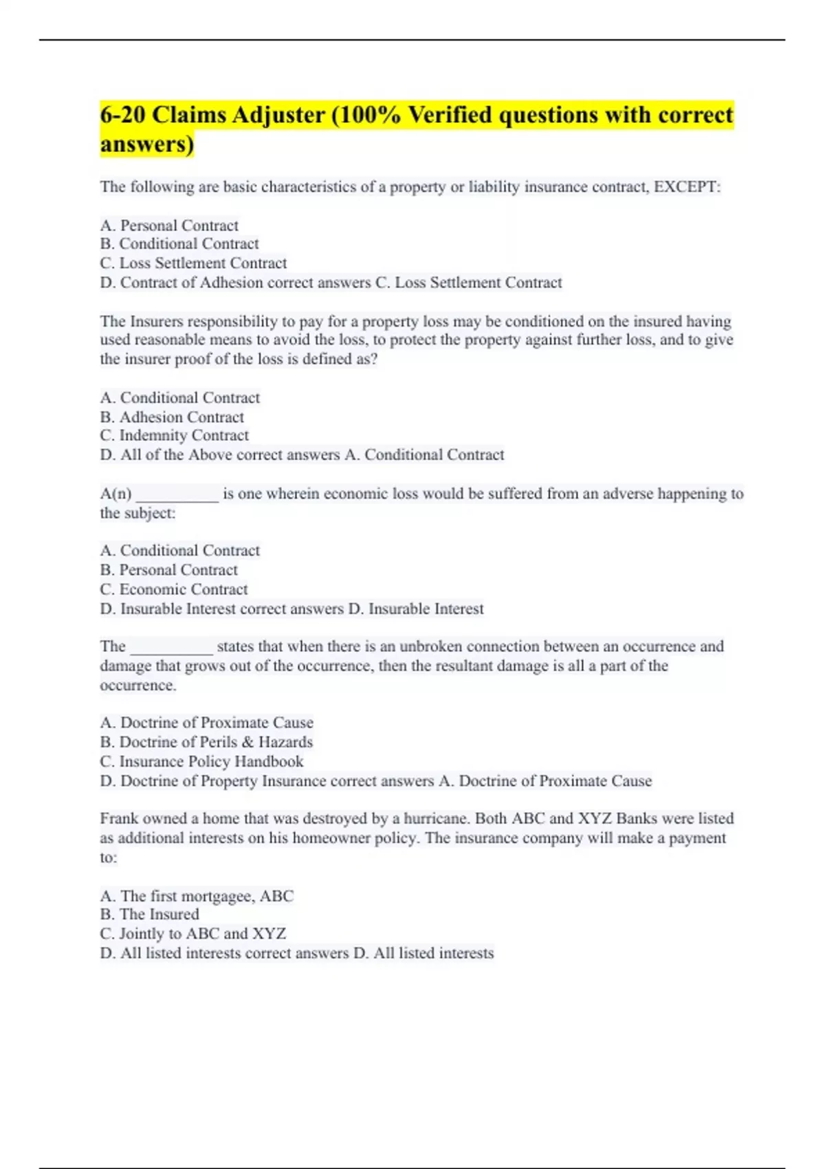 6-20 Claims Adjuster (100% Verified questions with correct answers)