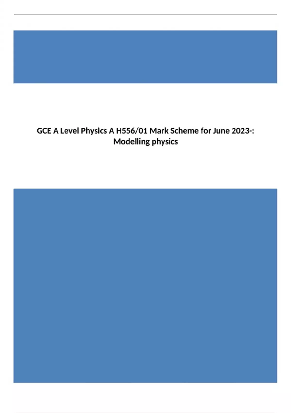OCR A Level Physics A Mark Scheme for June 2023-:H556/01 Modelling physics