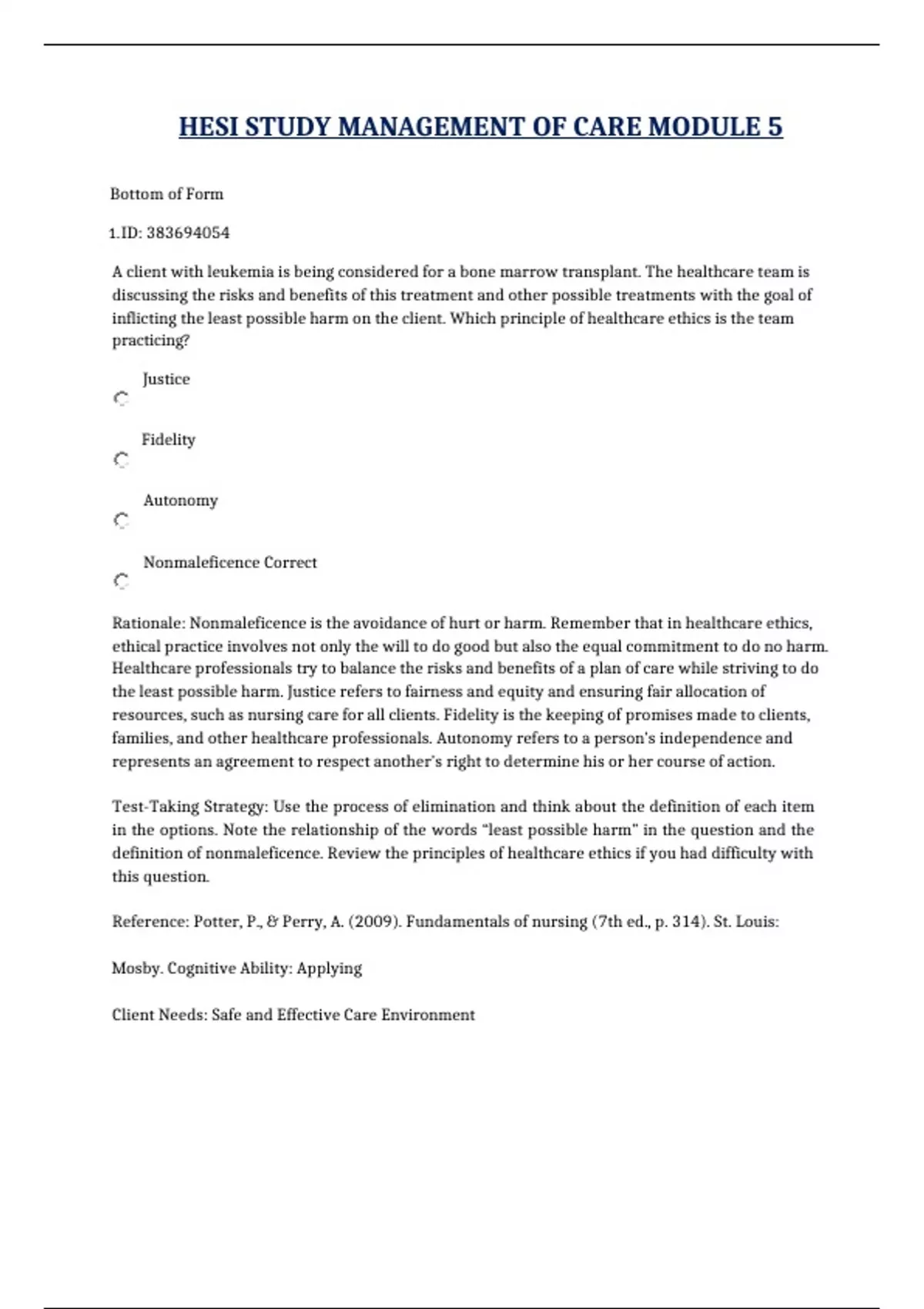 HESI STUDY MANAGEMENT OF CARE MODULE 5