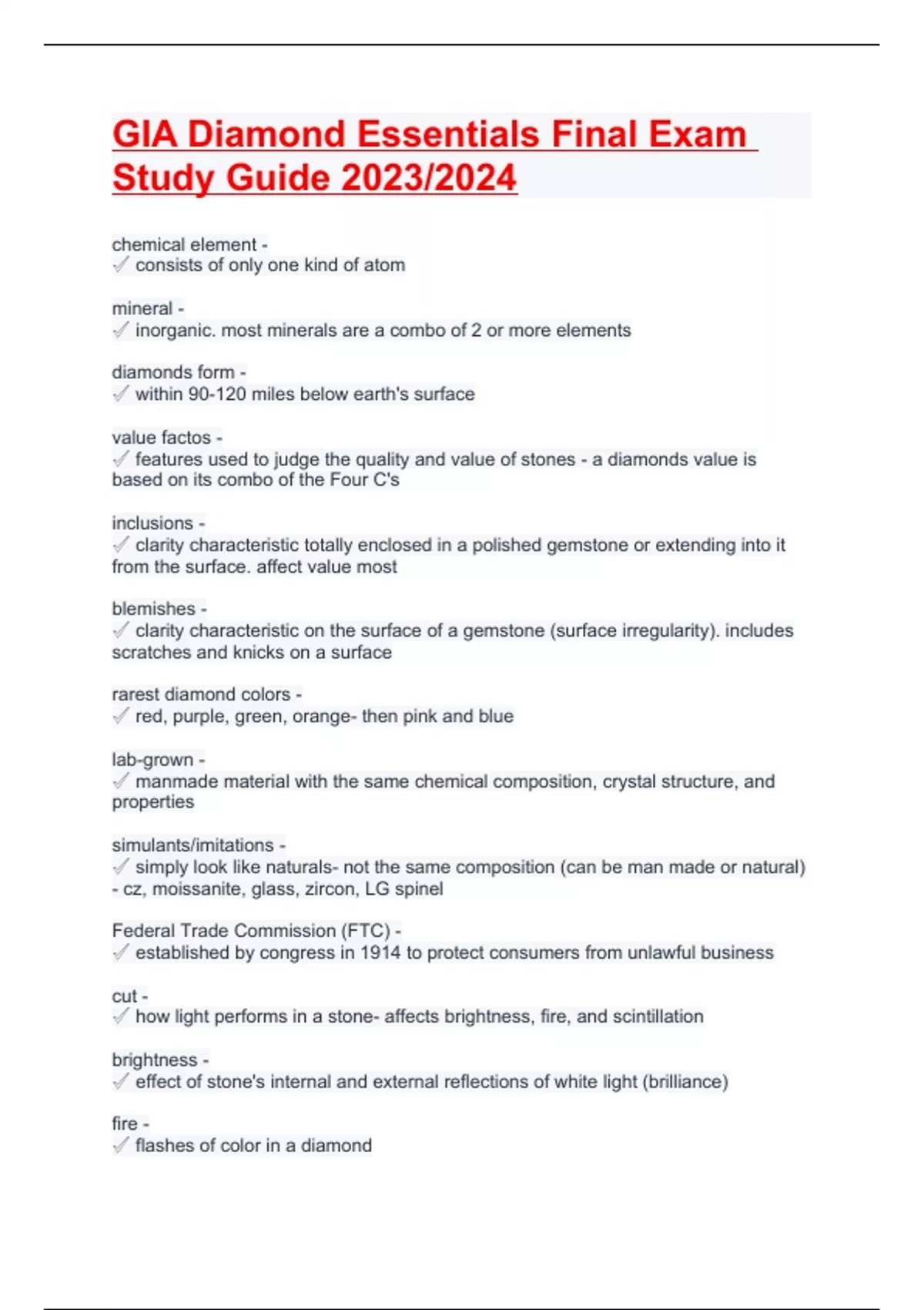gia diamond essentials final exam study guide 2023