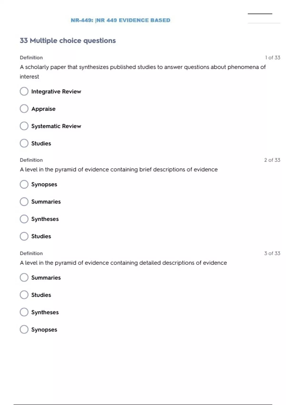 NR 449 EVIDENCE BASED PRACTICE TEST 5 QUESTIONS WITH 100% SOLVED SOLUTIONS