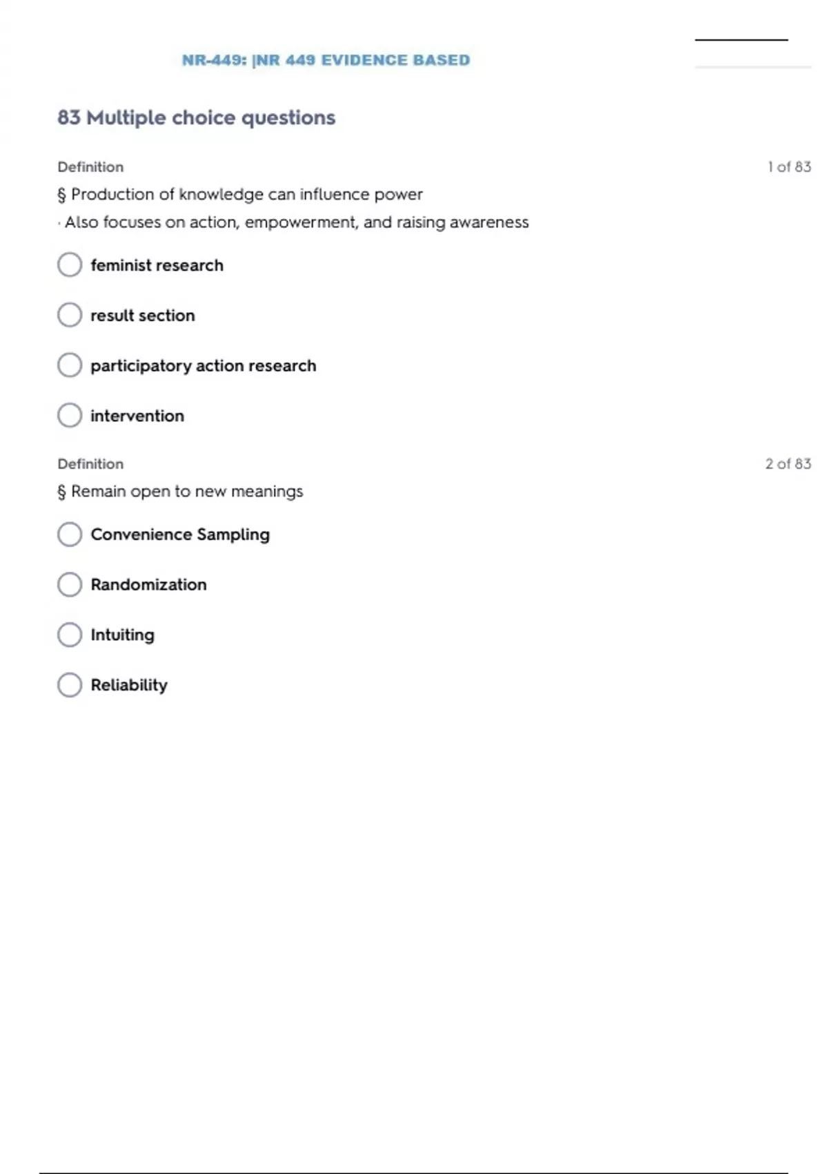 NR 449 EVIDENCE BASED PRACTICE TEST 3 QUESTIONS WITH 100% SOLVED SOLUTIONS