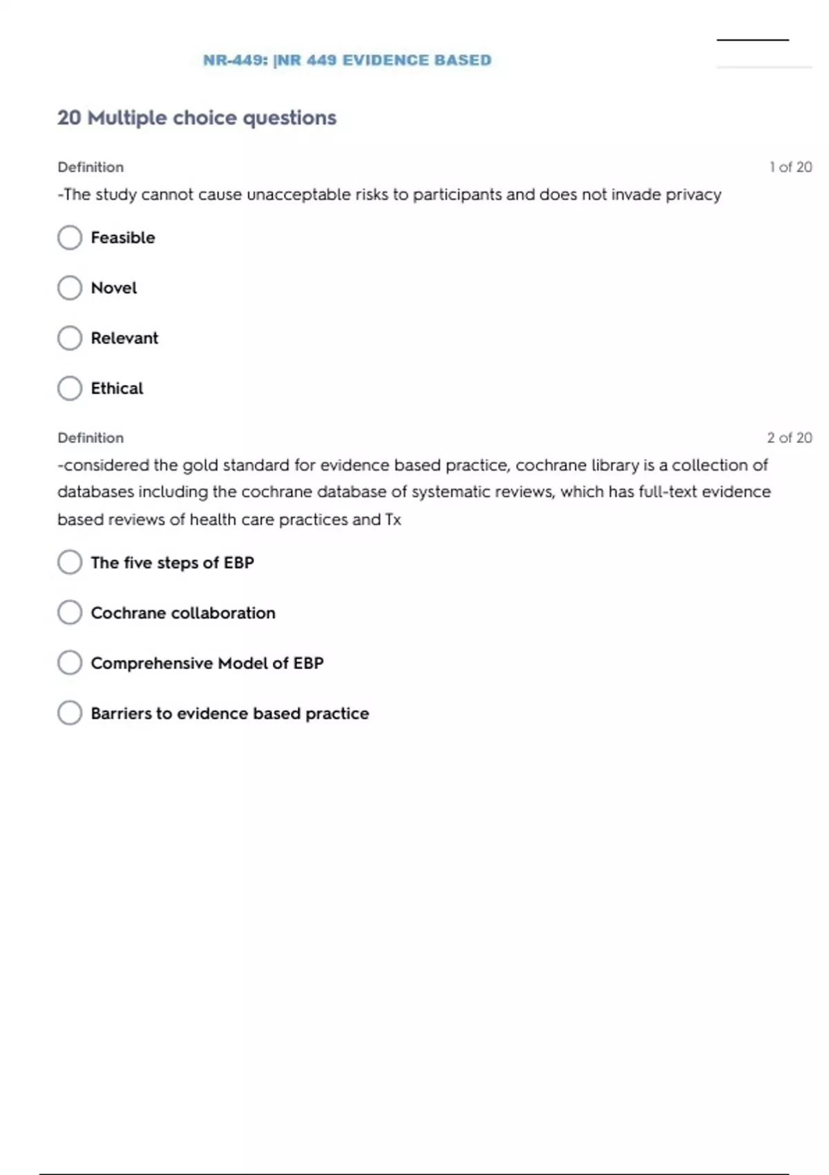 NR 449 EVIDENCE BASED PRACTICE TEST 1 QUESTIONS WITH 100% SOLVED SOLUTIONS