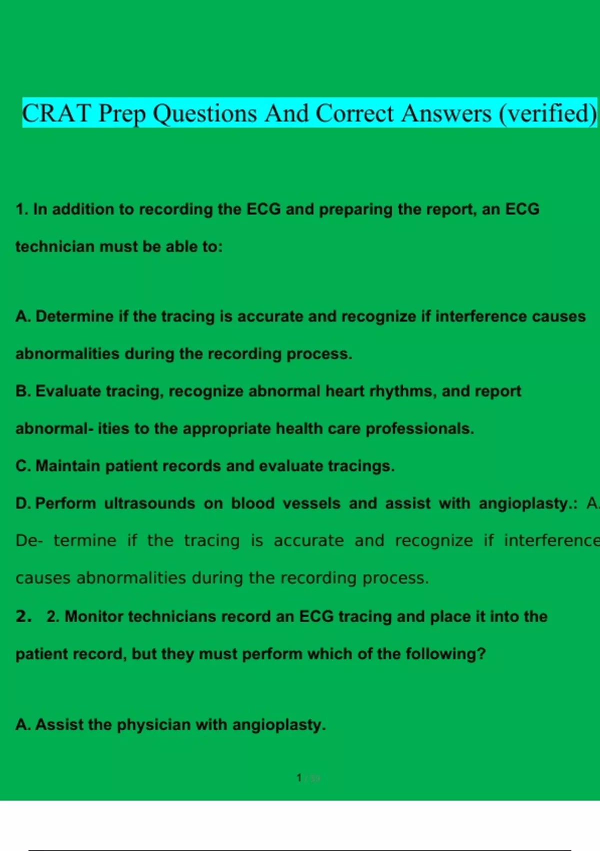 CRAT Prep Complete Questions with 100 % Verified Correct Answers