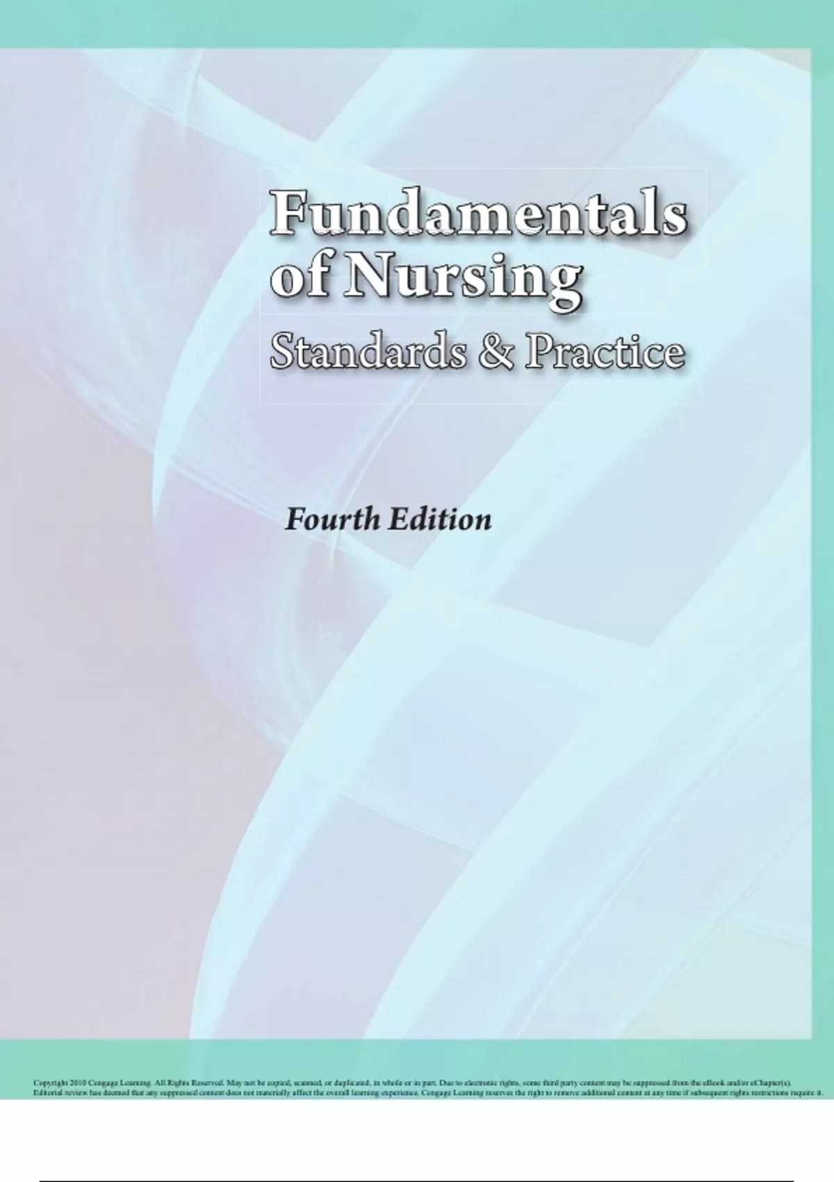 We are very excited to share the fourth edition of Fundamentals of Nursing: Standards and Practice with you! It is hoped that this text will encourage the student to develop an inquiring stance based on the joy of discovery and a love of learning. Nursing is facing new challenges in delivering quality care to clients in a variety of settings. The settings for delivery of care are rapidly expanding and challenge nurses to think outside the box in applying best practices based on current research. This edition presents the most current advances in nursing care, nursing education, and research relative to the demands of delivering care across a continuum of settings. Multiple theories of nursing are embraced, and nursing’s metaparadigm elements of theory—human beings, environment, health, and nursing—are threaded throughout this text. The organization of units and chapters is sequential; however, every effort has been made to allow for varying needs of diverse curricula and students. Each chapter may be used independently of the others according to the specific curriculum design. This comprehensive edition addresses fundamental concepts and skills to help prepare novice graduate nurses to apply an understanding of human behavior to issues encountered in clinical settings. Physiological and psychosocial responses of both client and nurse are addressed in a holistic manner. Integrative modalities are presented in an environment that encourages clients to participate in determining their care. Up-to-date clinical information is based on sound theoretical concepts and provides a rationale for practice. Scientific evidence is applied to the implementation of nursing interventions. CONCEPTUAL APPROACH This edition presents in-depth material in a clear, concise manner using language that is easy to read, by linking related concepts. Nursing knowledge is formulated on the basic concepts of scientific and discipline-specific theory, health and health promotion, the environment, holism, client teaching, spirituality, research and evidence-based practice, and the continuum of care. Emphasis is placed on cultural diversity, care of the older adult, and ethical and legal principles. The nursing process provides a consistent approach for presenting information. Assessment tools specific to selected topics are presented to assist students with pertinent data collection. Therapeutic nursing interventions reflect standards of practice and emphasize safety, communication skills, interdisciplinary collaboration, and effective delegation in delivering nursing care. Critical thinking and reflective reasoning skills are integrated throughout the text. The safe and appropriate use of technology has been incorporated throughout the text to reflect contemporary nursing practice. The conceptual approach used as an organizational framework for the fourth edition falls into four categories: • Individuals: Viewed as holistic beings with multiple needs and strengths and the abilities to meet those needs. Holism implies that individuals are treated as whole entities rather than fragmented parts or problems. Each person is a complex entity who is influenced by cultural values, including spiritual beliefs and practices. Every person has the right to be treated with dignity and respect regardless of race, ethnicity, age, religion, socioeconomic status, or health status. • Environment: A complex interrelationship of internal and external variables. Internal variables include one’s selfconcept, self-efficacy, cognitive development, and psychological traits. The external environment affects an individuals