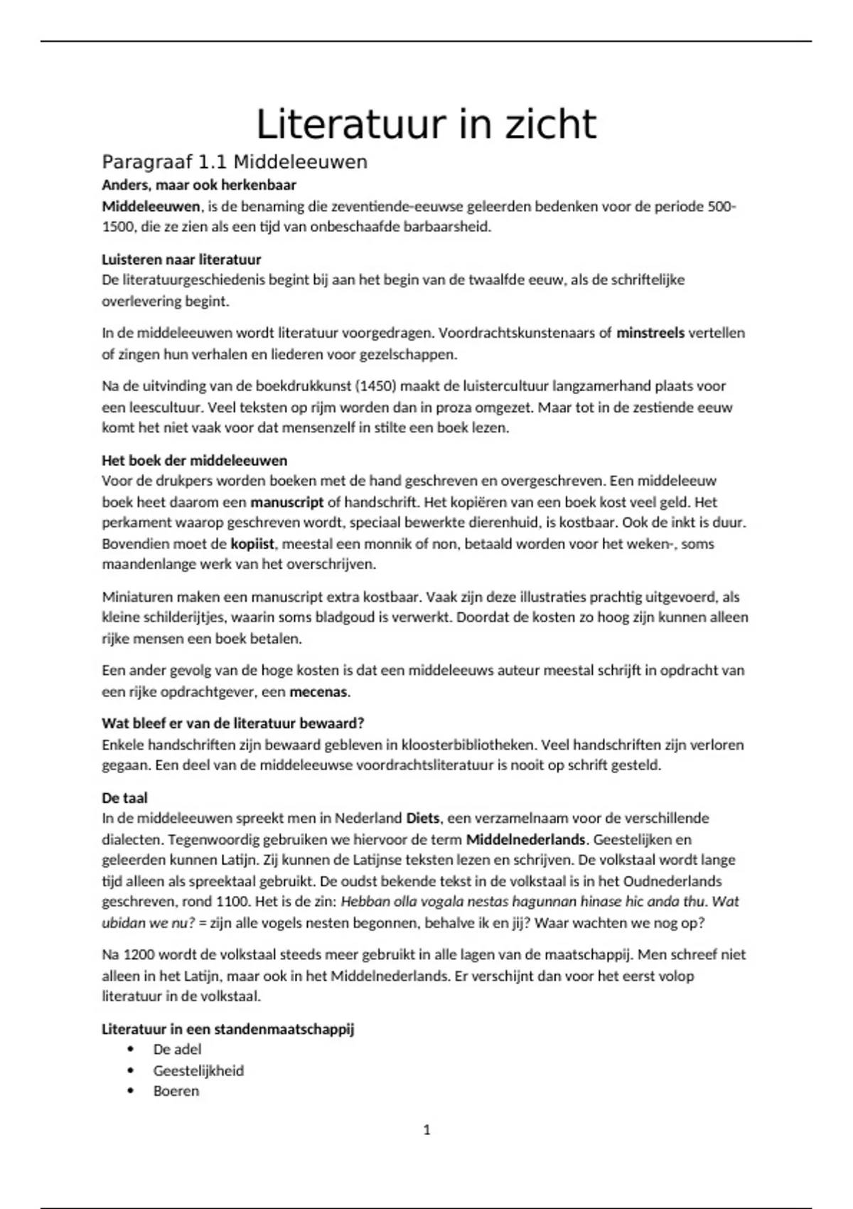 Havo samenvatting Nederlands hoofdstuk 1-5 Literatuur in Zicht