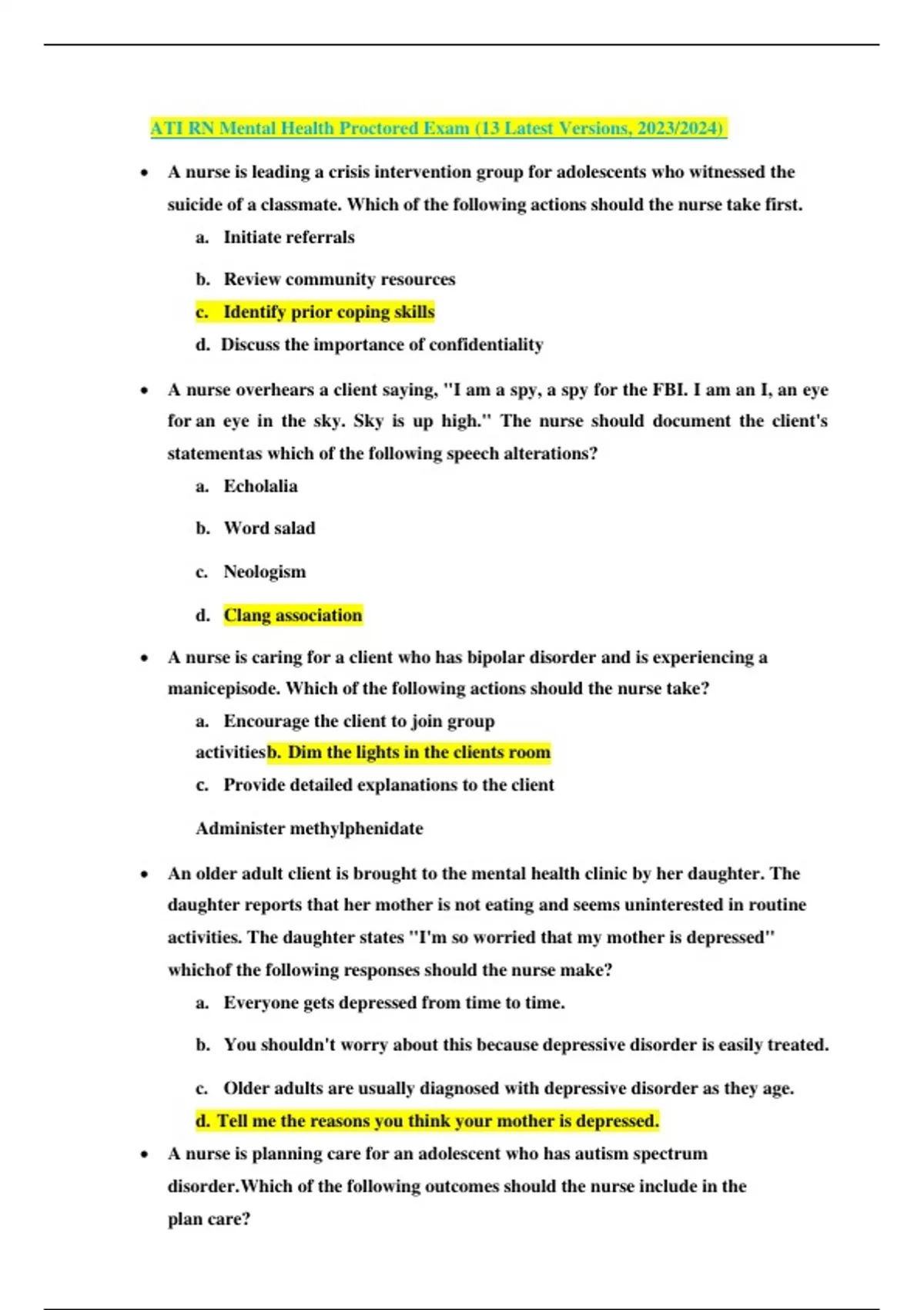 ATI RN Mental Health Proctored Exams (13 Latest Versions Questions and Answers)ATI RN Mental Health Proctored Exams (13 Latest Versions Questions and Answers)ATI RN Mental Health Proctored Exams (13 Latest Versions Questions and Answers)ATI RN Mental Health Proctored Exams (13 Latest Versions Questions and Answers)Mental Health ATI Proctored Exam (Complete Guide for Exam Preparation, 100% Correct Answers)