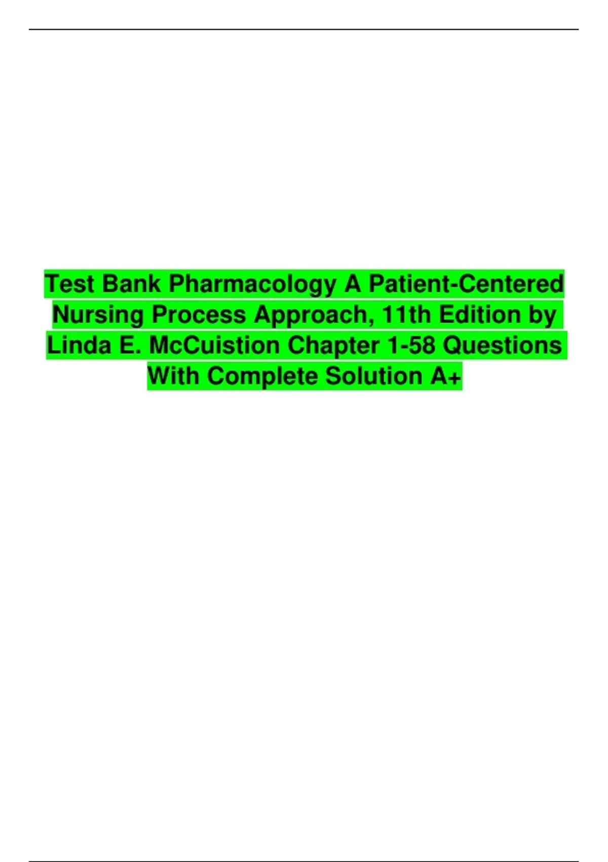 Test Bank Pharmacology A Patient-Centered Nursing Process Approach, 11th Edition by Linda E. McCuistion Chapter 1-58 Questions With Complete Solution A+
