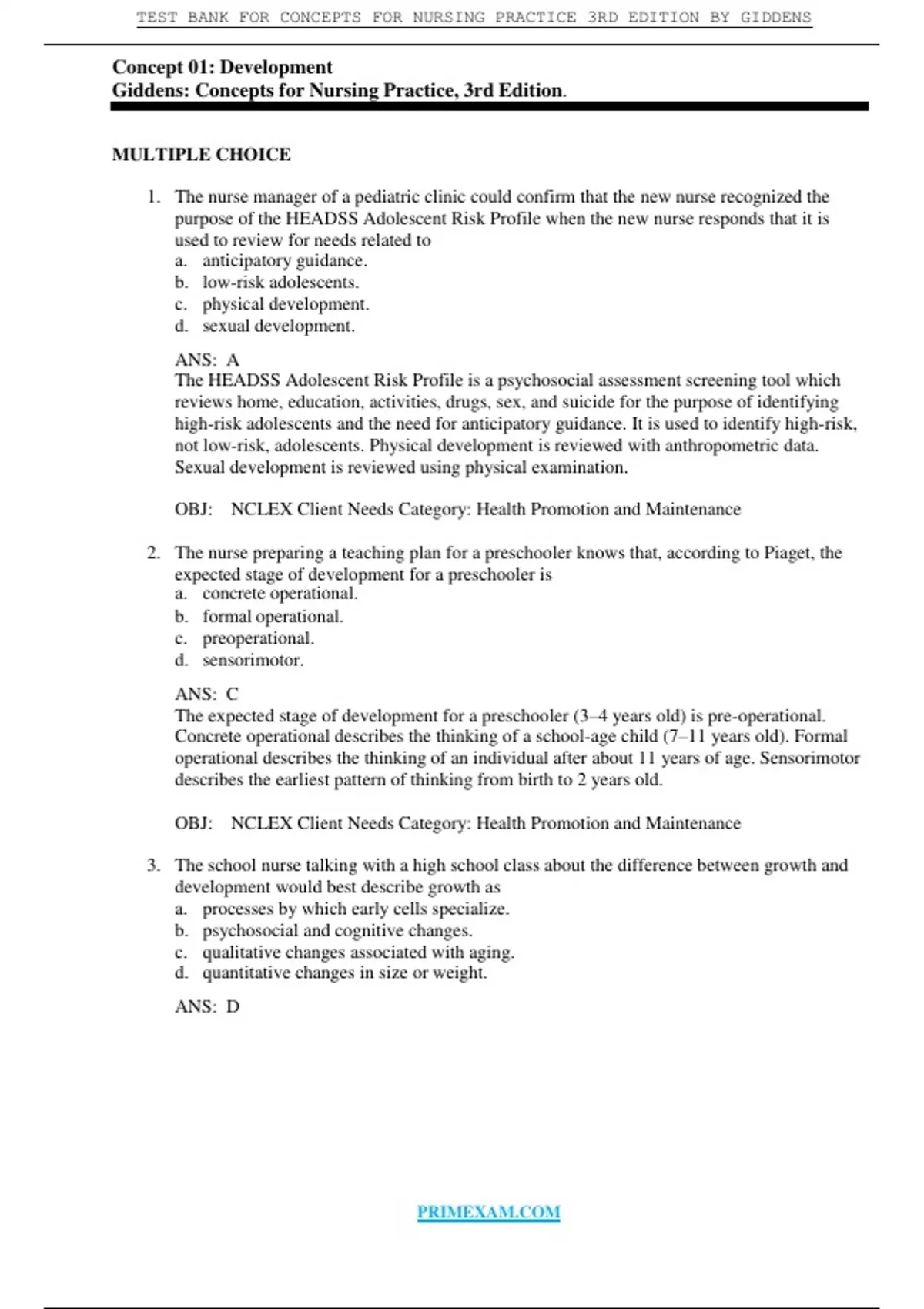 , TEST BANK FOR CONCEPTS FOR NURSING PRACTICE 3RD EDITION BY GIDDENS