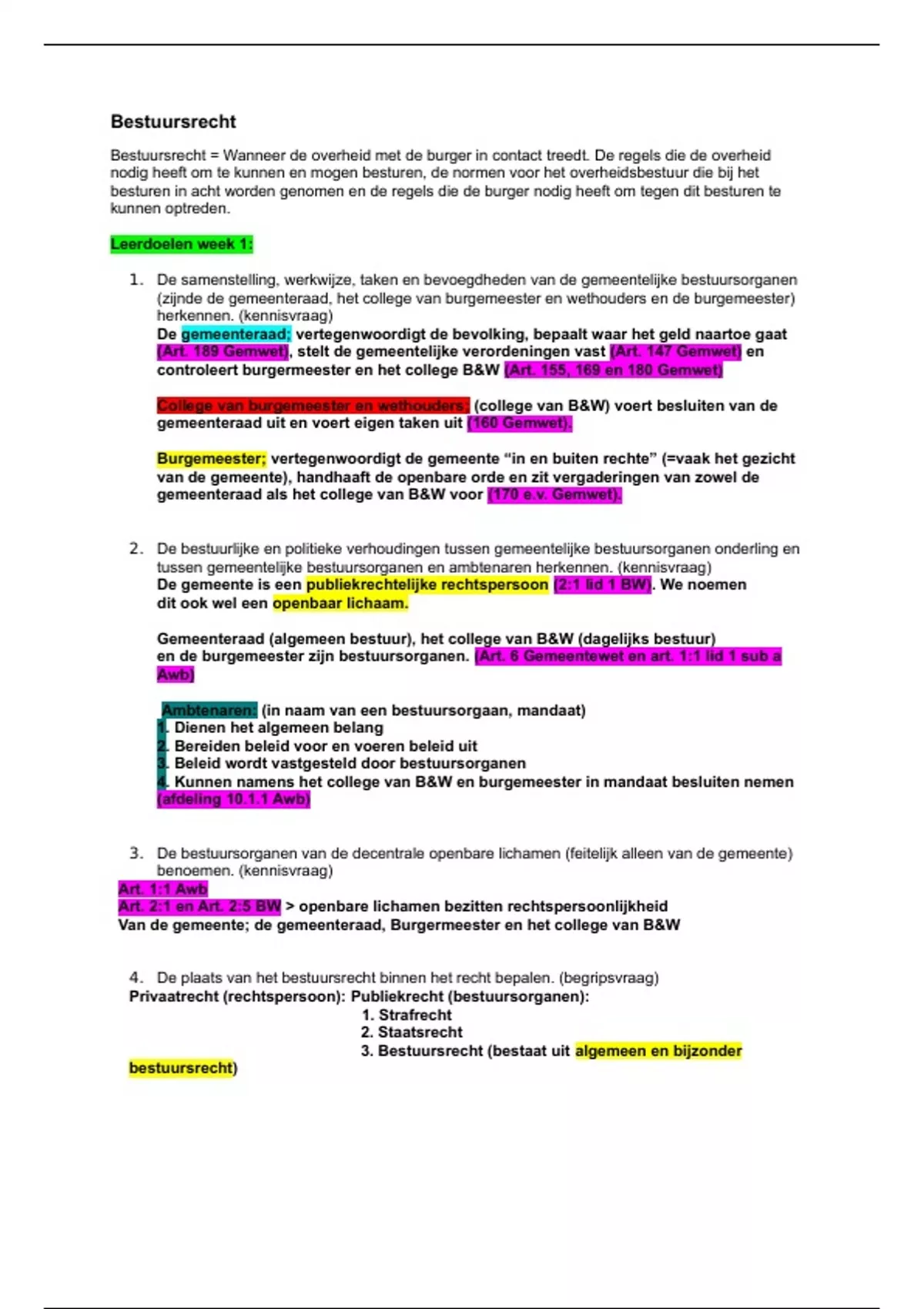 In dit document tref je mijn bestuursrecht samenvatting. In dit document heb ik alle (40) leerdoelen uitgewerkt, al mijn aantekeningen van het werk- en hoorcolleges verwerkt en extra informatie uit het lesboek toegevoegd.