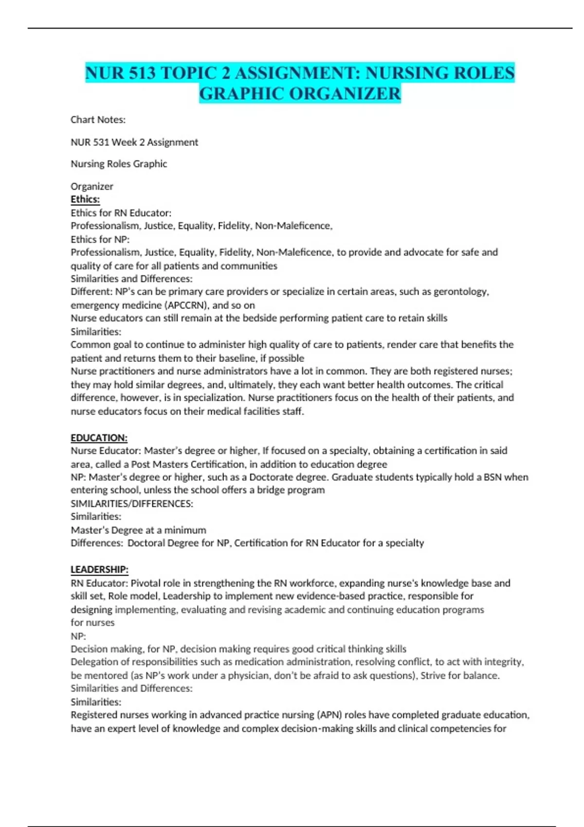 NUR 513 TOPIC 2 ASSIGNMENT: NURSING ROLES GRAPHIC ORGANIZER