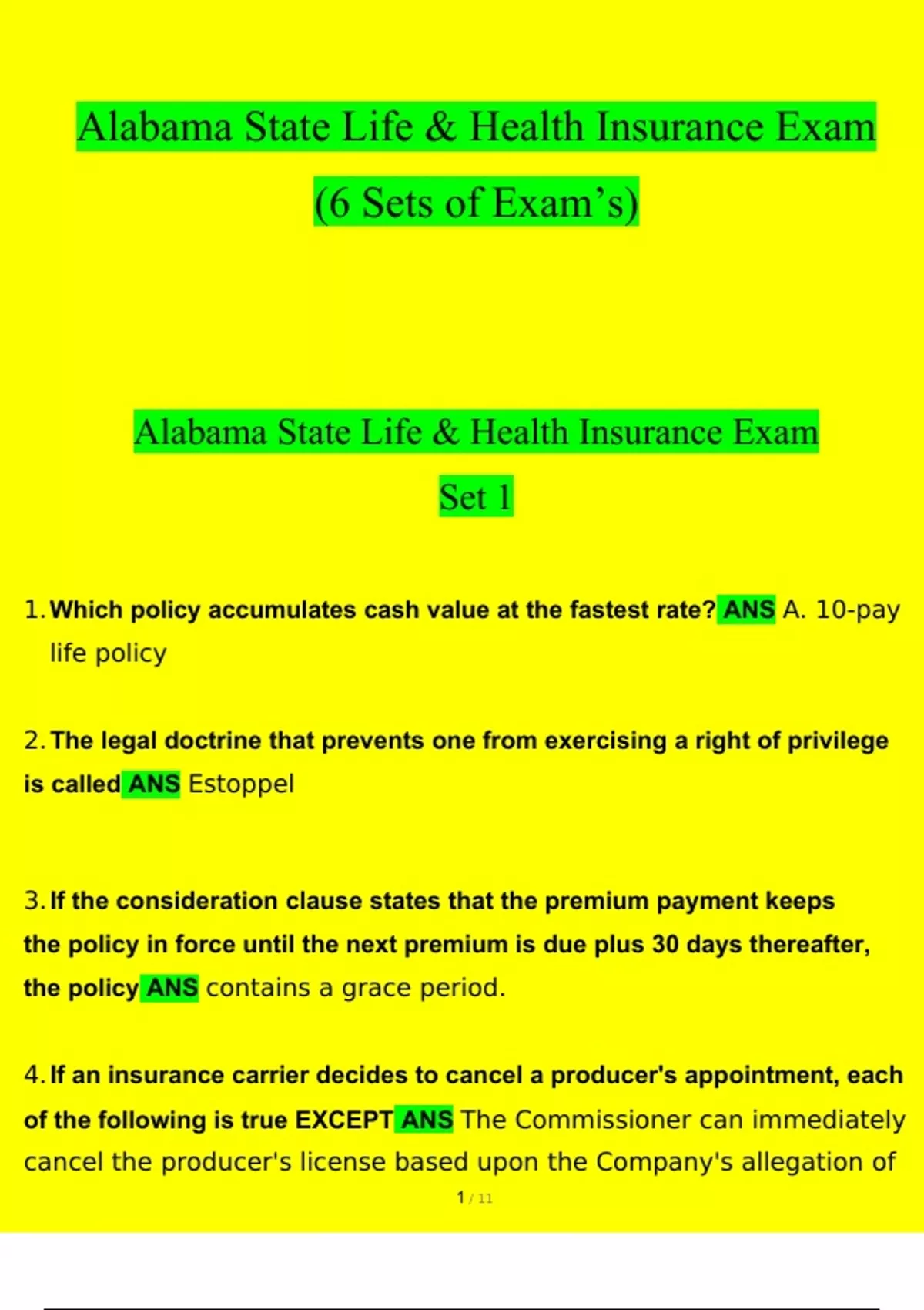 Alabama State Life and Health Insurance Exam Questions and Answers