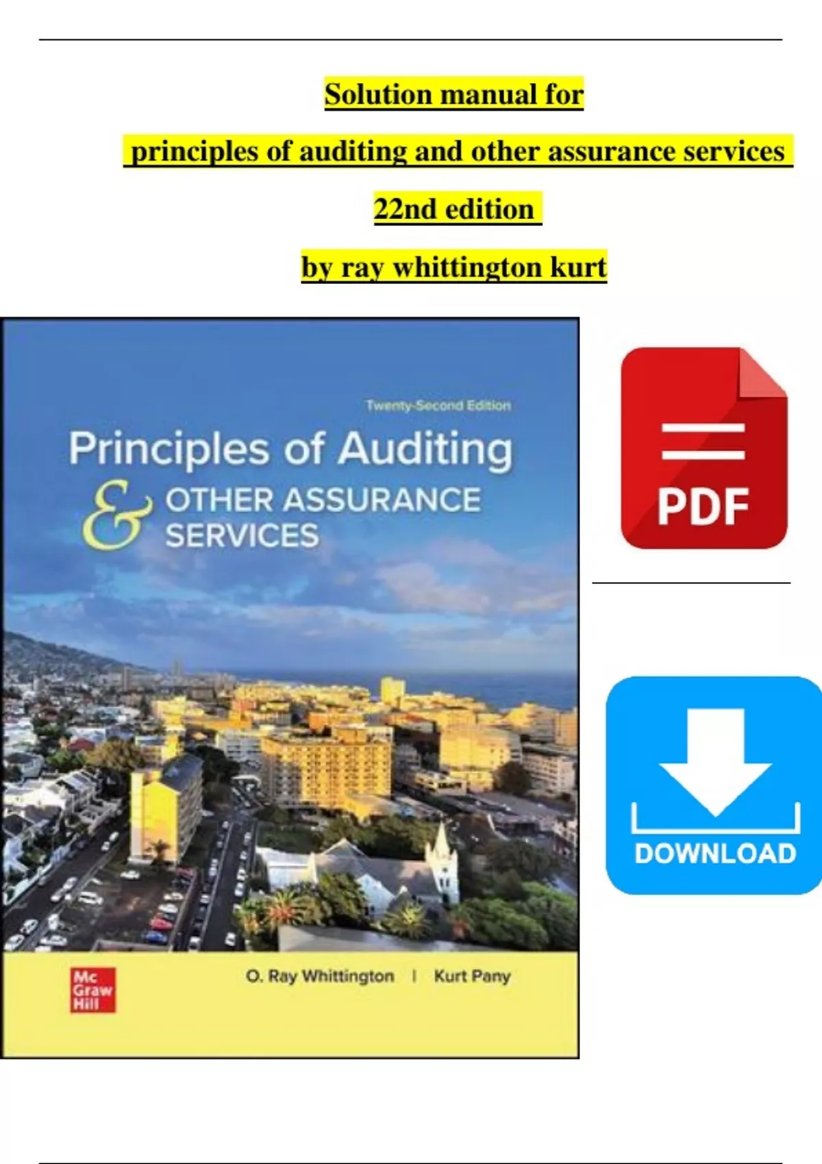 TEST BANK and Solution Manual For Principles of Auditing and Other Assurance Services 22nd Edition by Ray Whittington, Kurt Pany| Complete Verified Chapter s |
