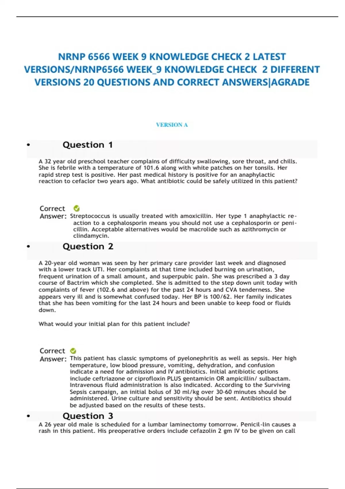 LATEST NRNP 6566 WEEK 9 KNOWLEDGE CHECK 2 LATEST VERSIONS/NRNP6566 WEEK_9 KNOWLEDGE CHECK 2 DIFFERENT VERSIONS 20 QUESTIONS AND CORRECT ANSWERS|AGRADE