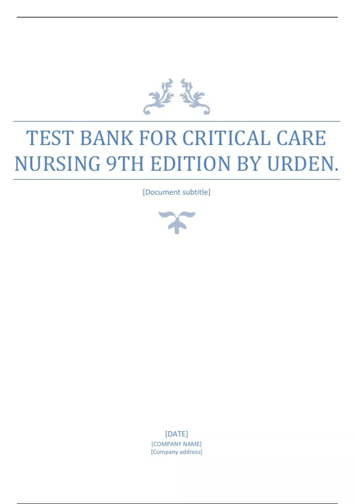 Test Bank for Critical Care Nursing 9th Edition by Urden.
