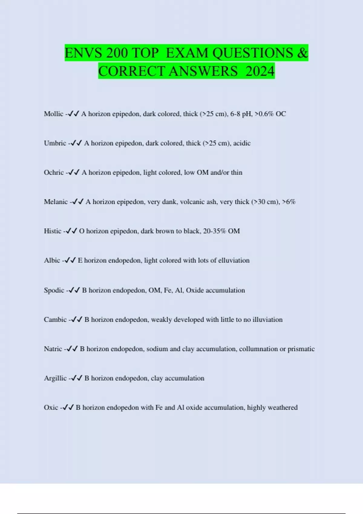 ENVS 200 TOP EXAM QUESTIONS & CORRECT ANSWERS 2024