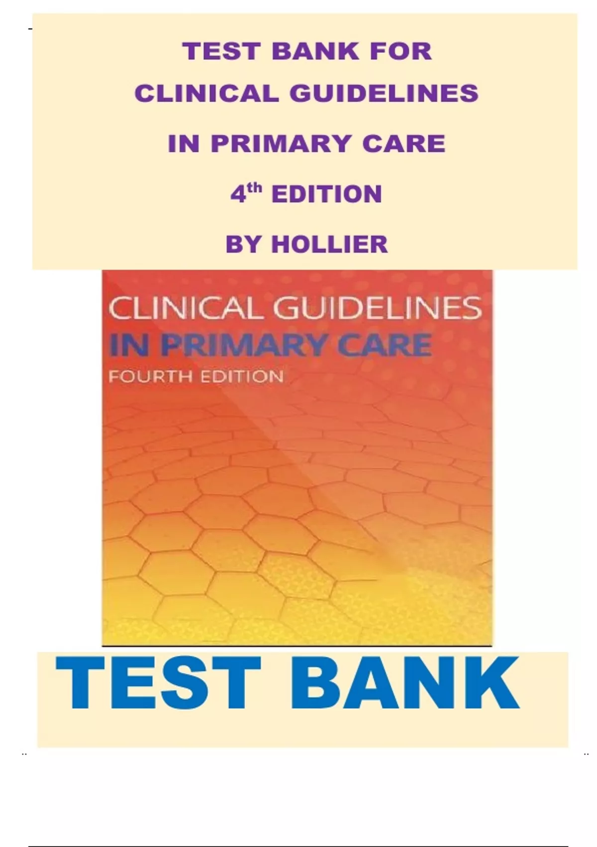 CLINICAL GUIGELINES IN PRIMARY CARE 4TH EDITION BY HOLLIER (TEST BANK)