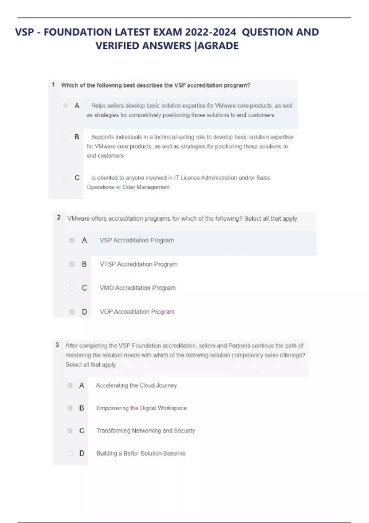 VSP - FOUNDATION LATEST EXAM QUESTION AND VERIFIED ANSWERS |AGRADE