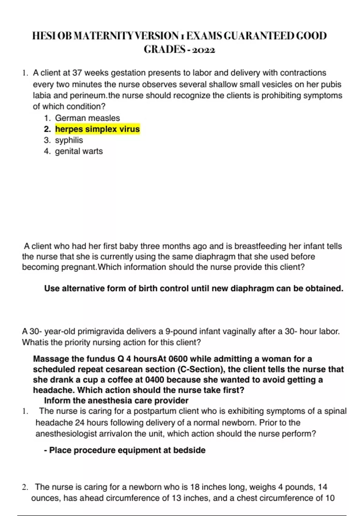 HESI OB MATERNITY VERSION 1 EXAMS GUARANTEED GOOD GRADES - 2022