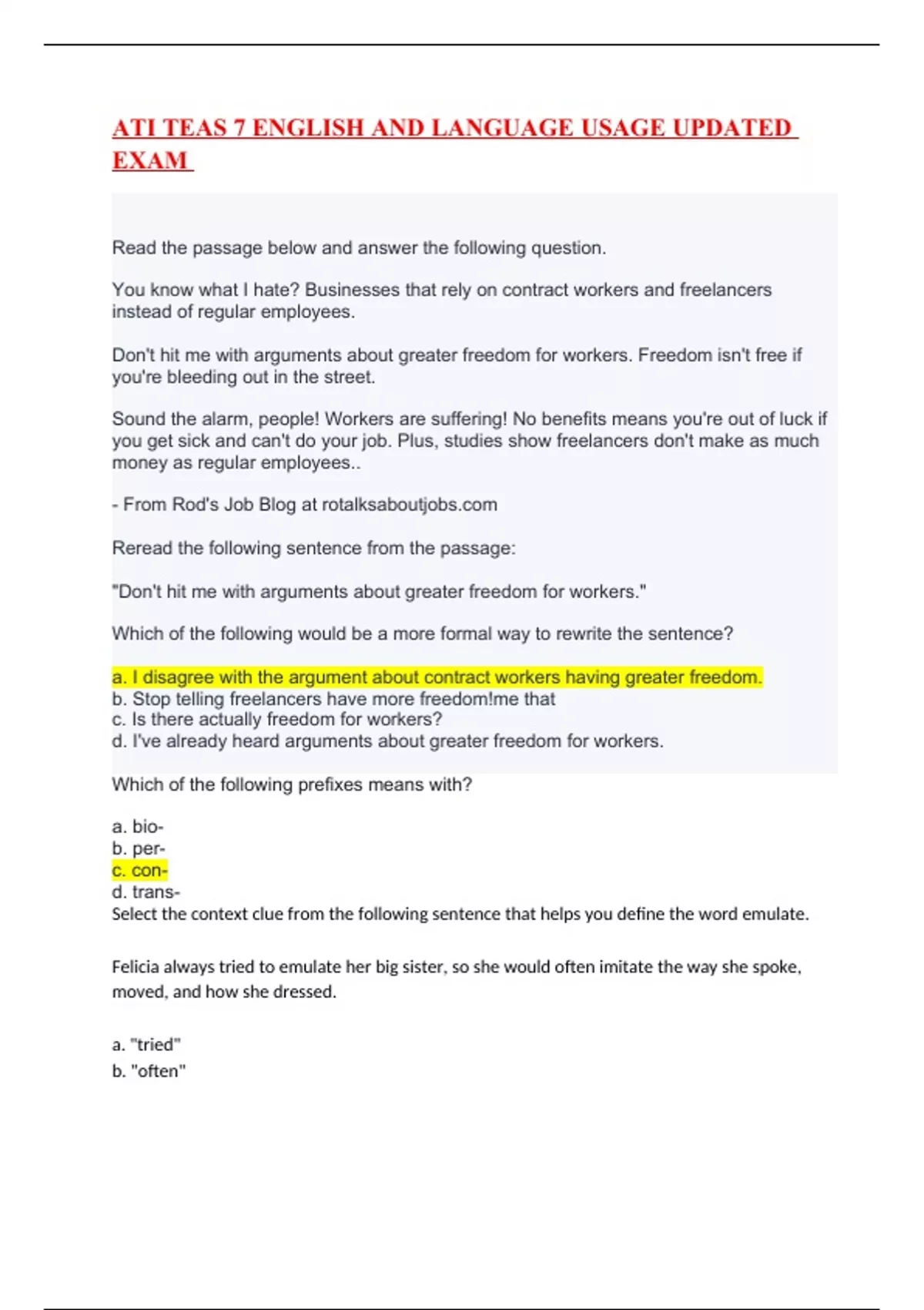 - ATI TEAS 7 ENGLISH AND LANGUAGE USAGE UPDATED