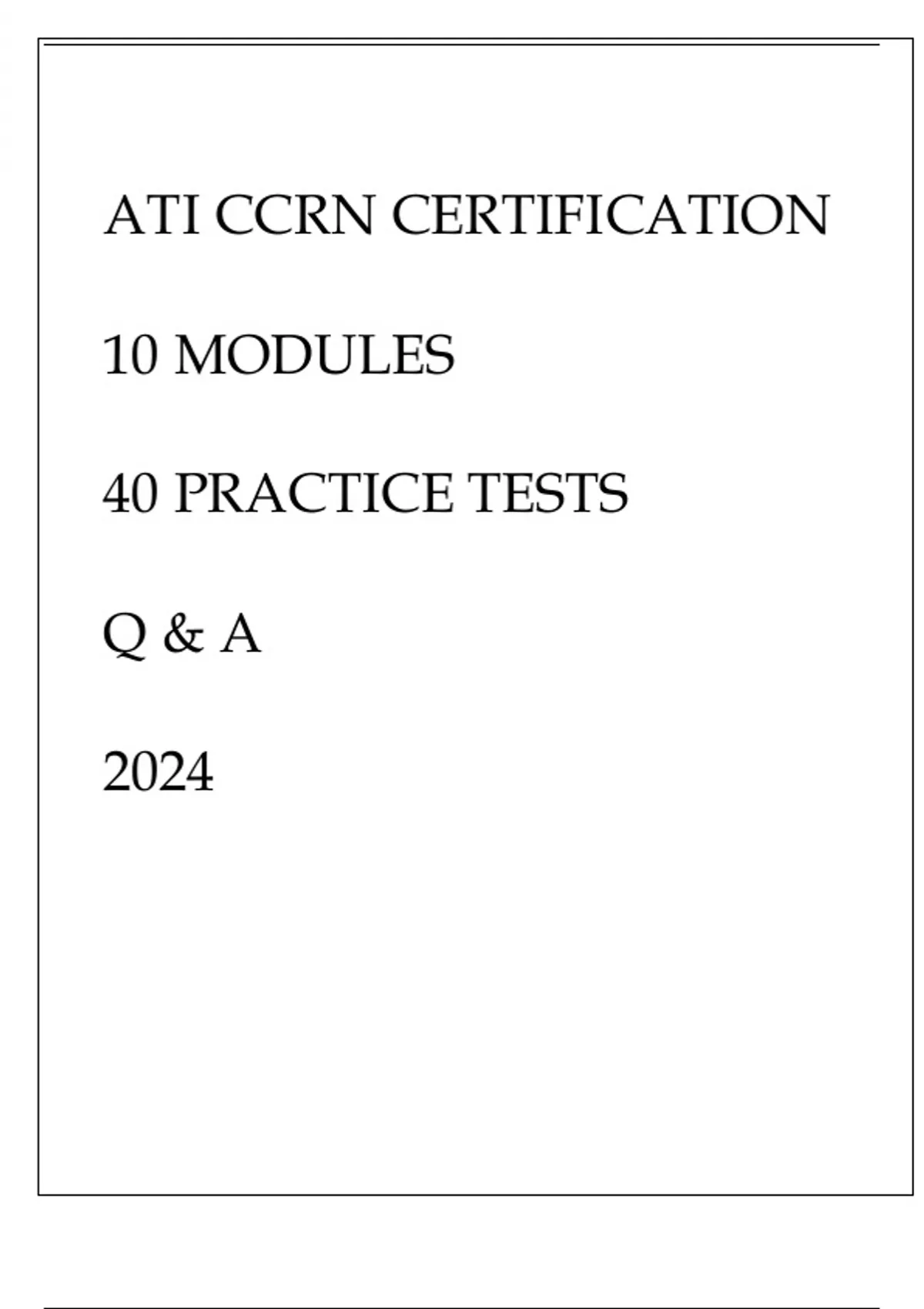 ATI CCRN CERTIFICATION 10 MODULES 40 PRACTICE TESTS Q & A 2024.