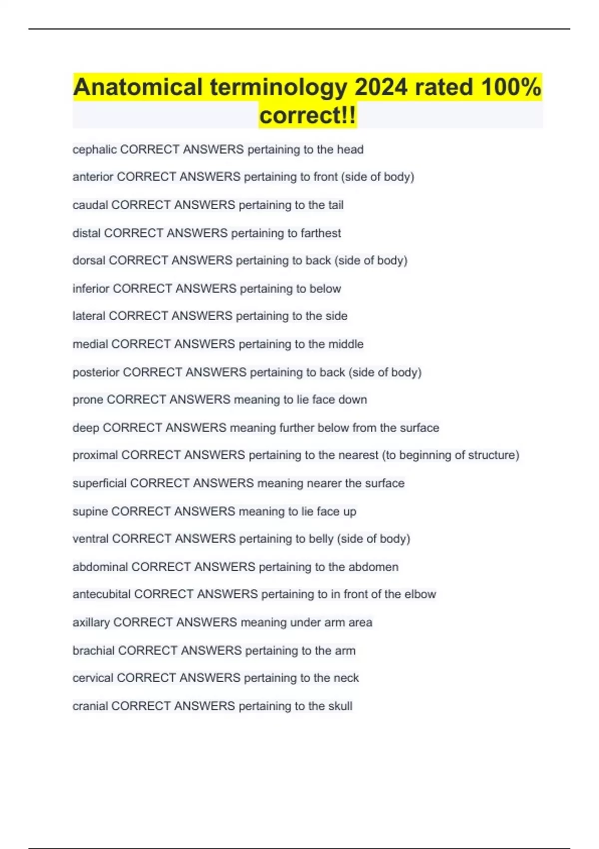 Anatomical terminology 2024 rated 100% correct!!