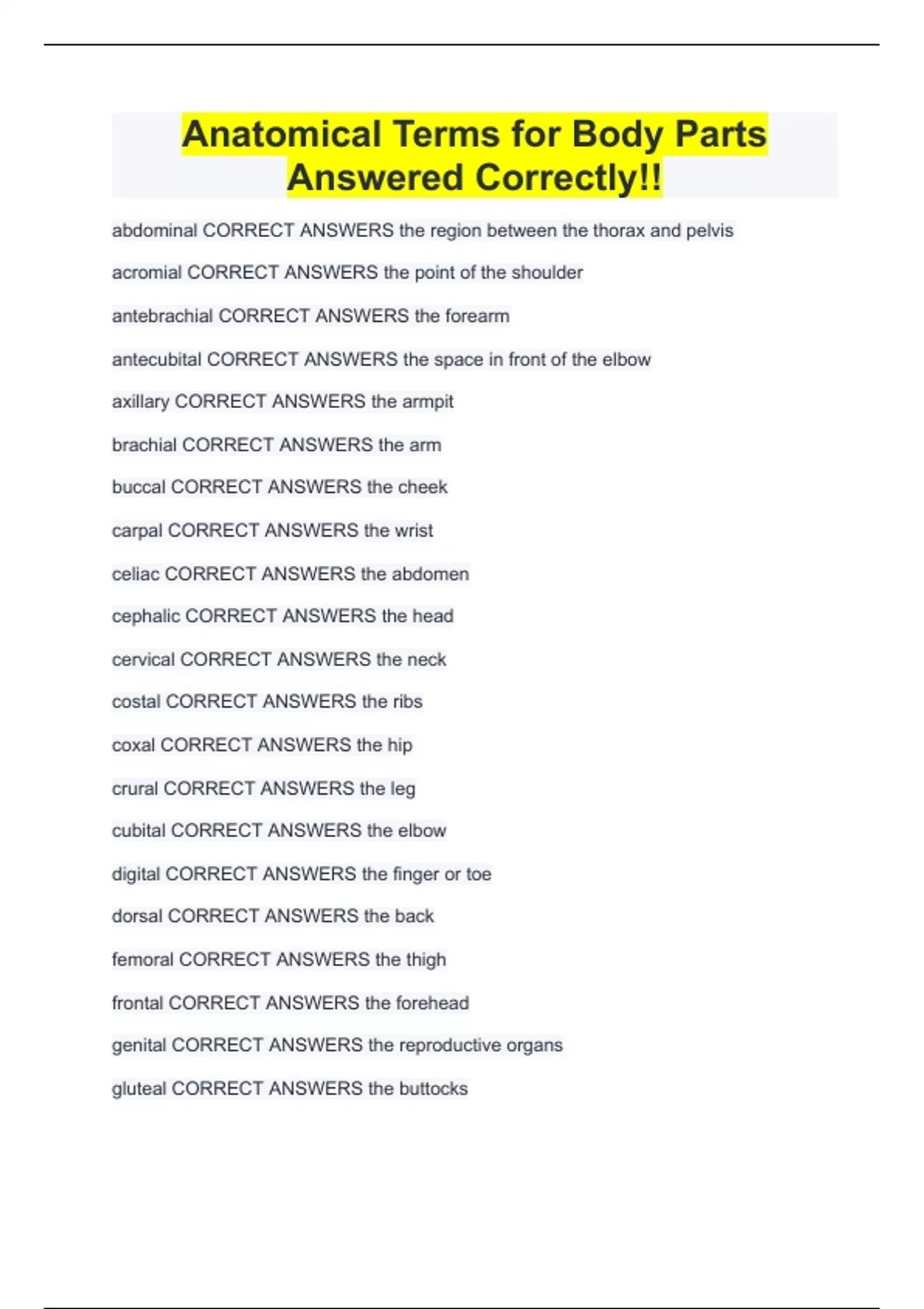 Anatomical Terms for Body Parts Answered Correctly!!