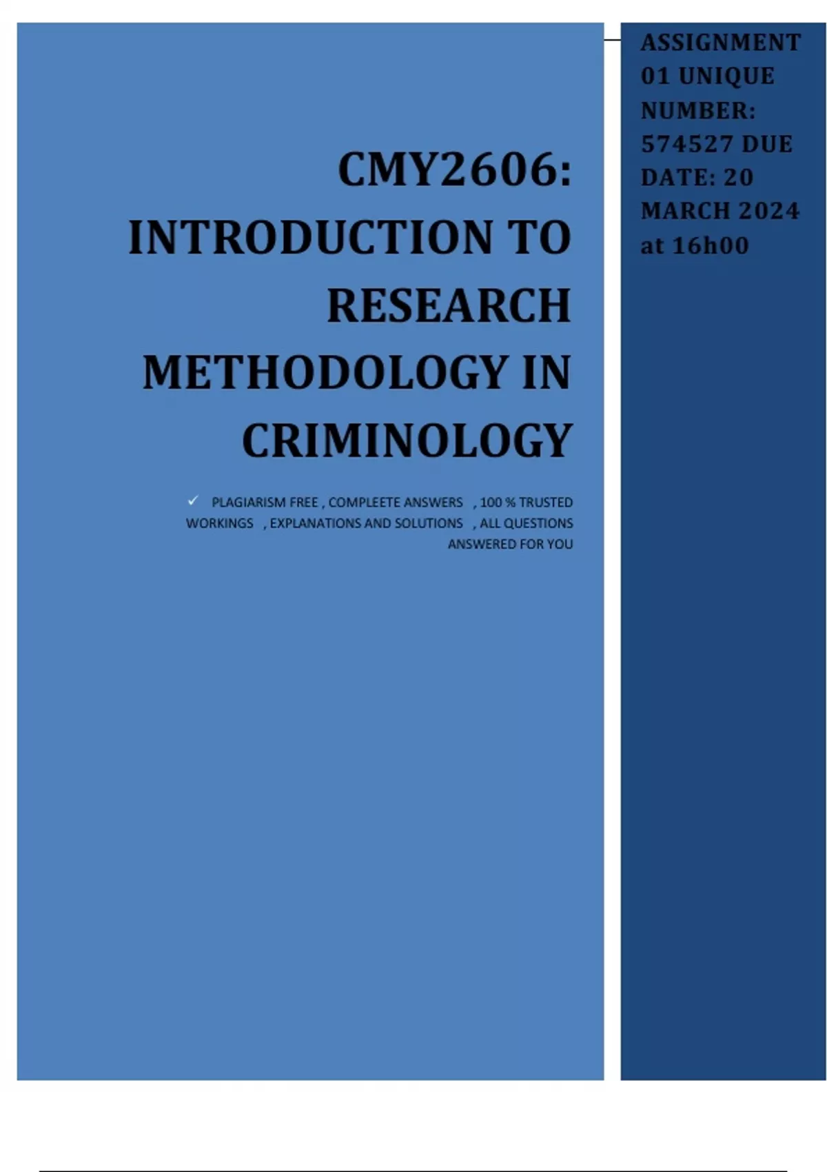 , CMY2606: INTRODUCTION TO RESEARCH METHODOLOGY IN CRIMINOLOGY ASSIGNMENT 01