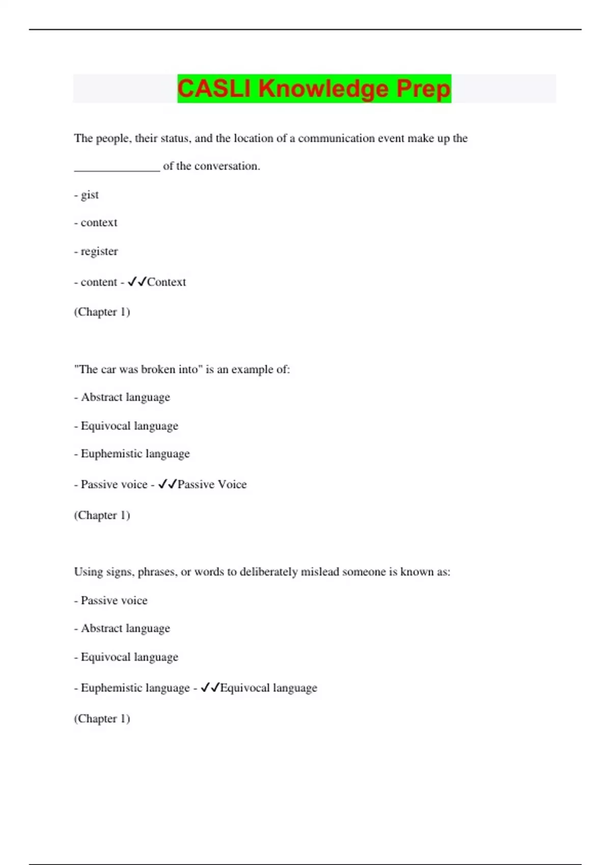 CASLI Knowledge Prep Questions with 100% Correct Answers | Latest Update 2024 | Verified