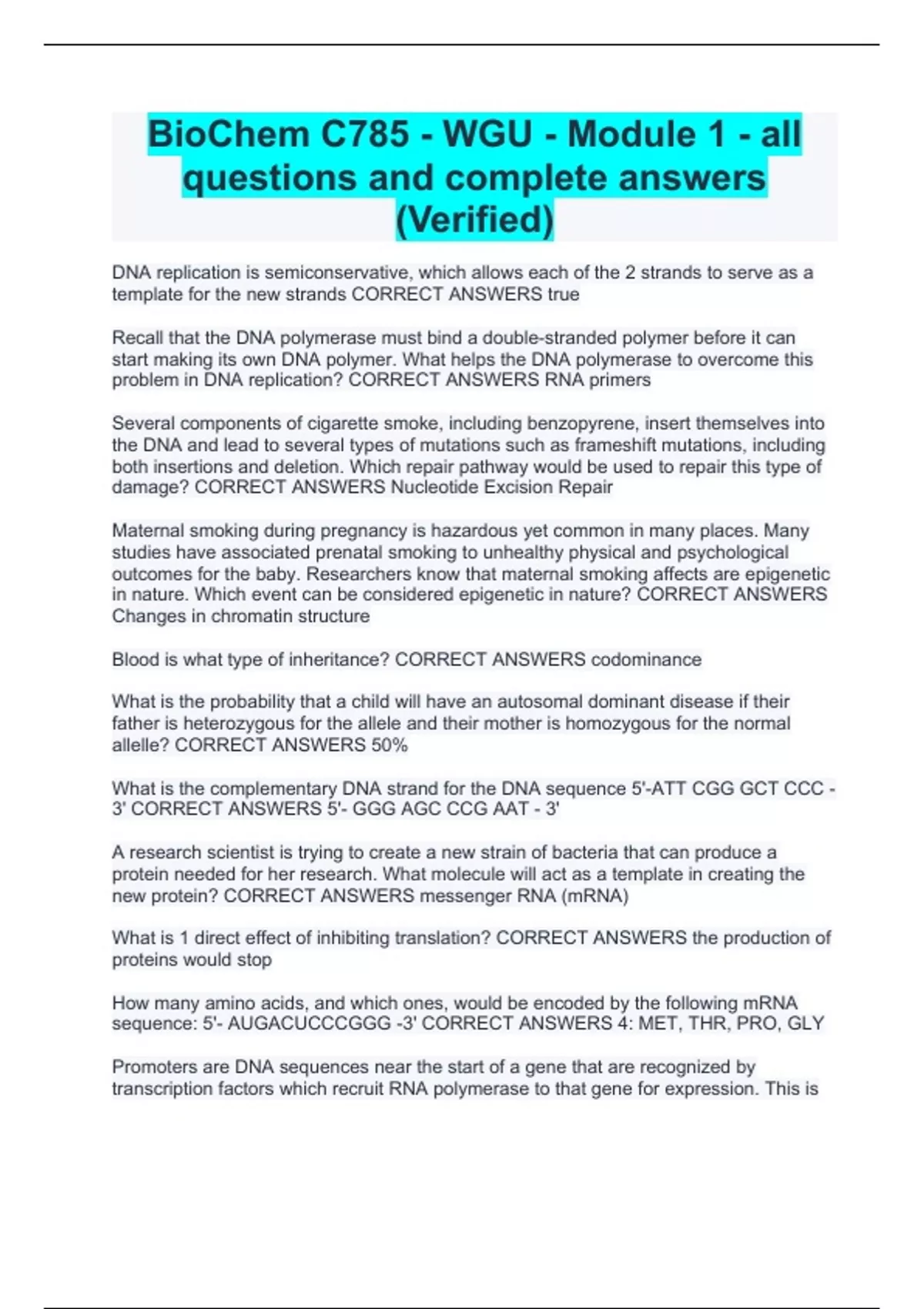 biochem c785 wgu module 1 all questions and
