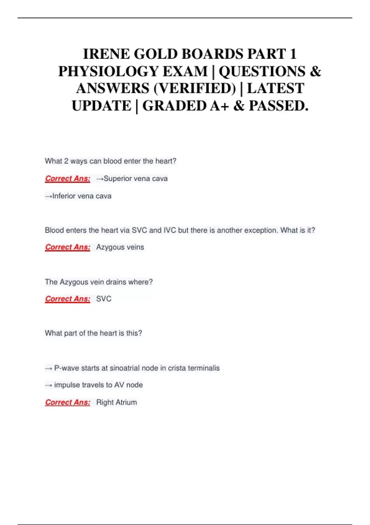 IRENE GOLD BOARDS PART 1 PHYSIOLOGY EXAM | QUESTIONS & ANSWERS (VERIFIED) | LATEST UPDATE | GRADED A+ & PASSED.