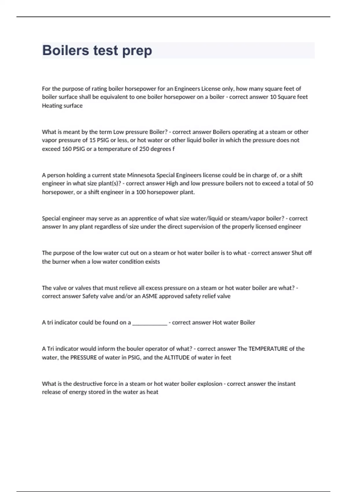 boilers test prep question and answers correctly s