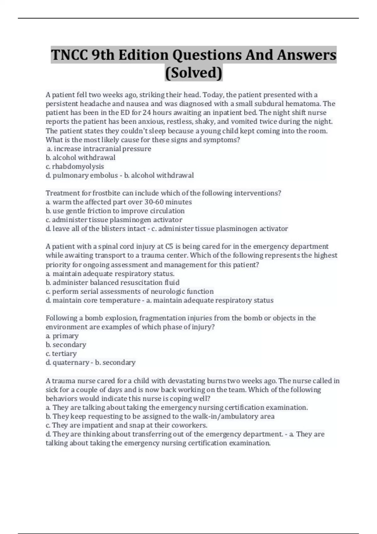 TNCC 9th Edition Questions And Answers (Solved)