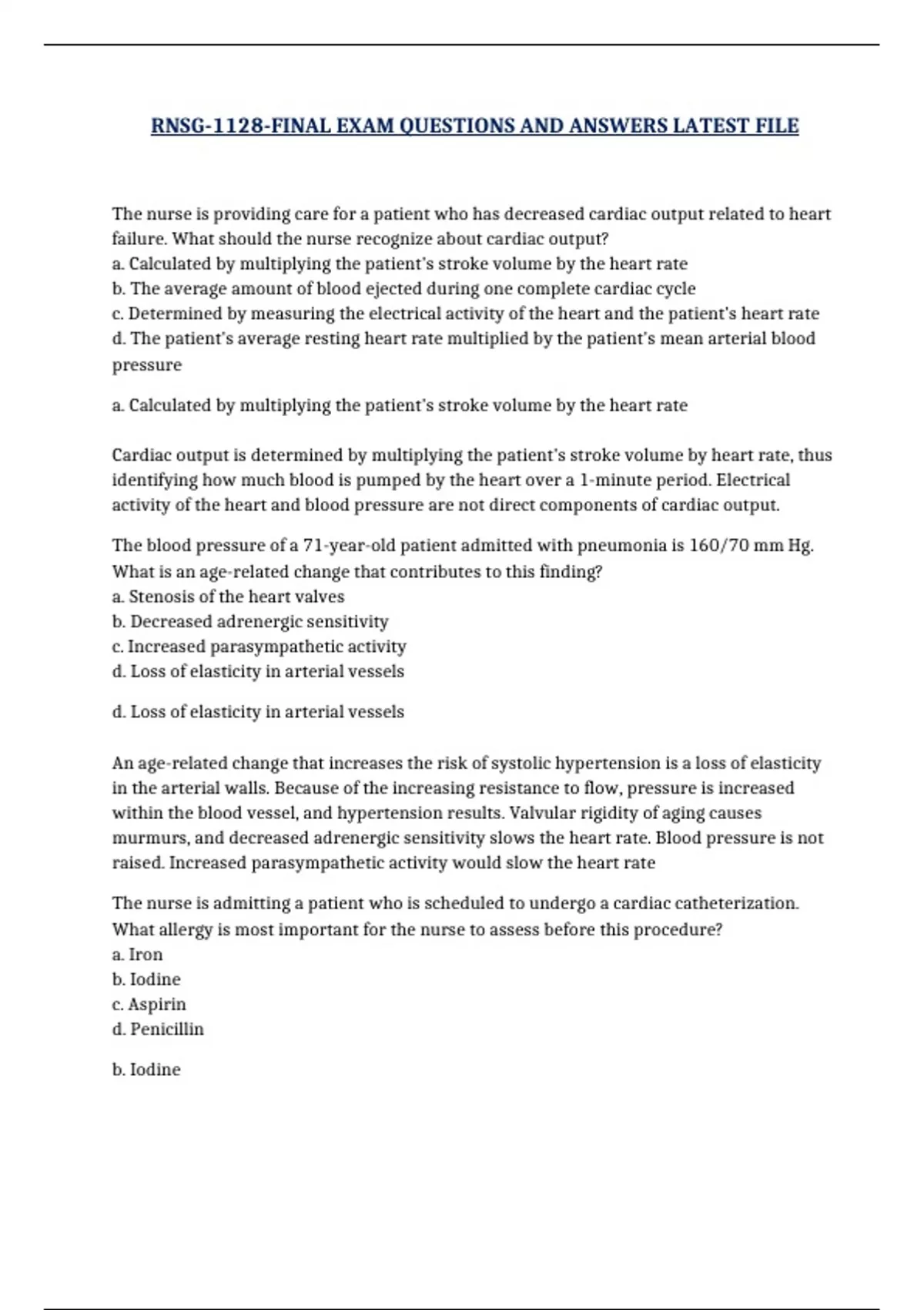 RNSG 1128 FINAL EXAM QUESTIONS AND ANSWERS LATEST FILE