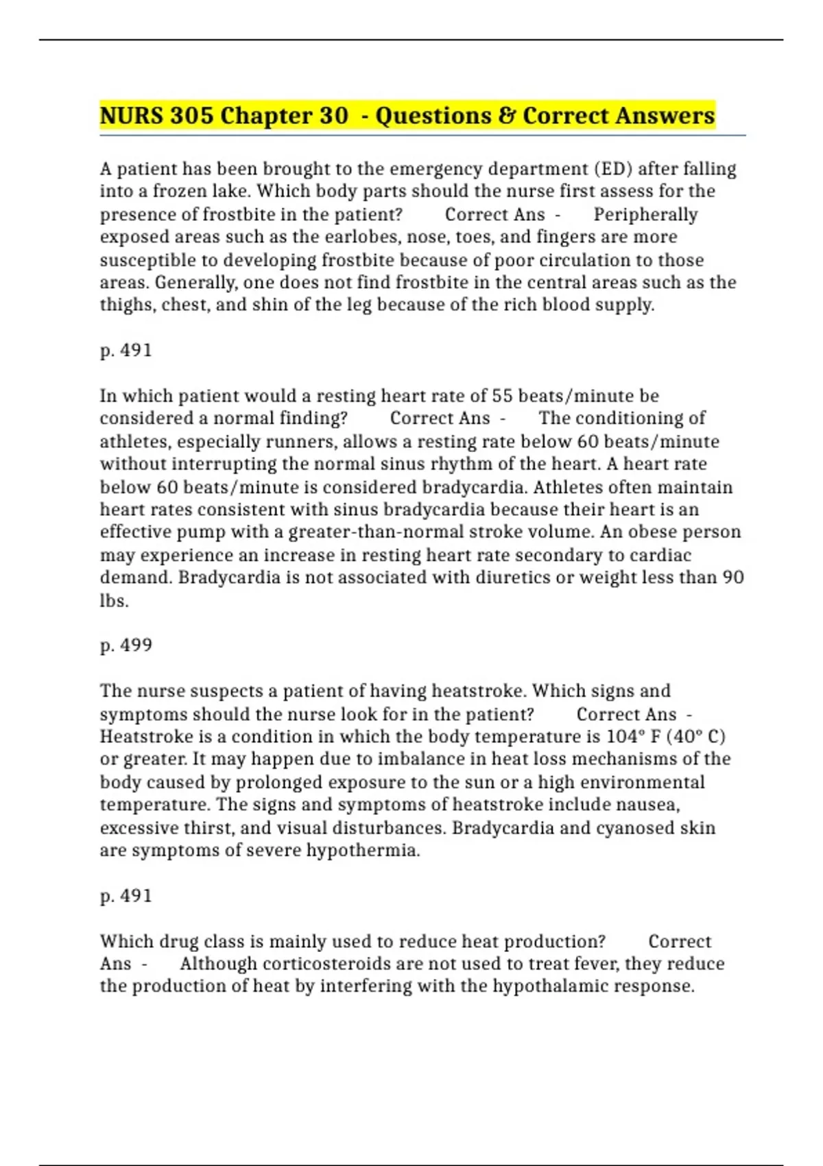 NURS 305 Chapter 30 - Questions & Correct Answers