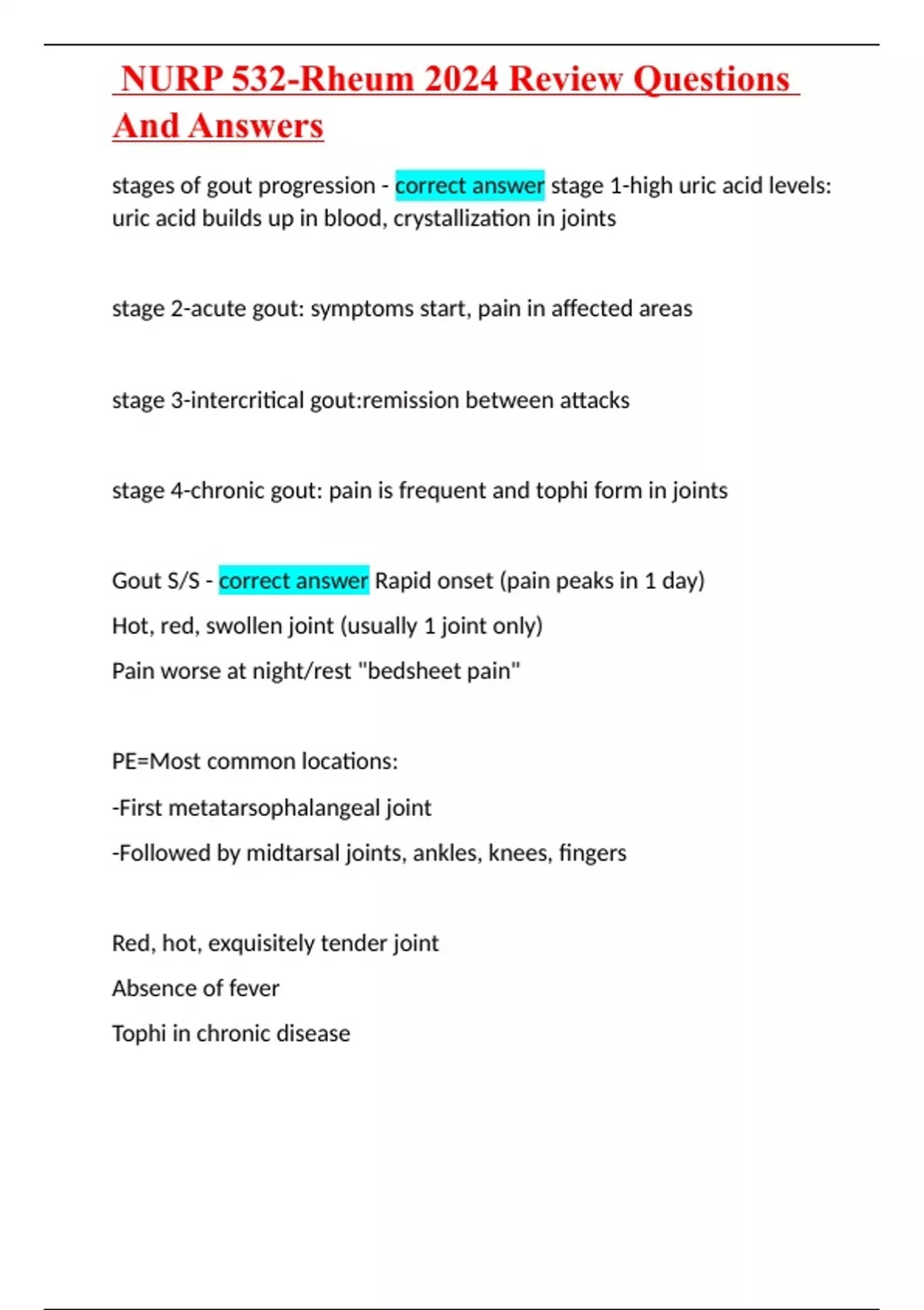NURP 532-Rheum 2024 Review Questions And Answers