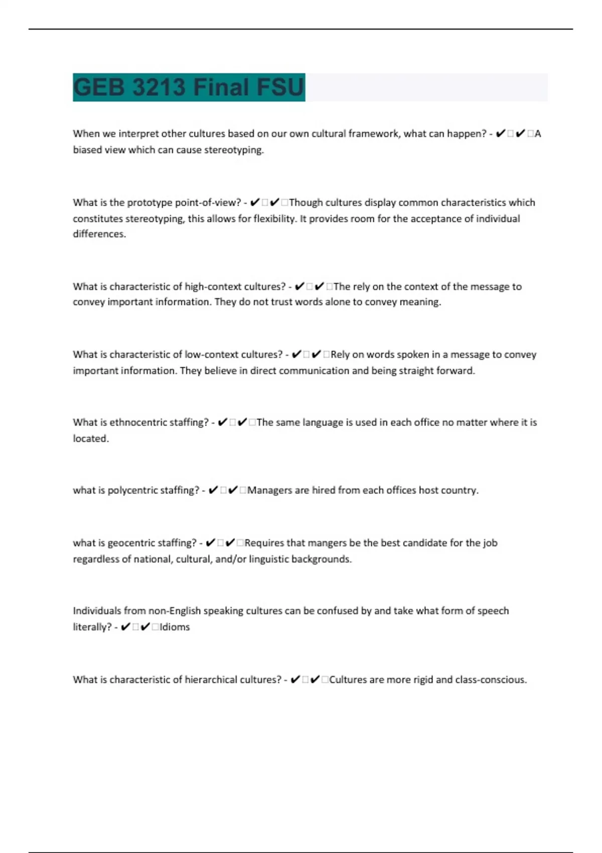 GEB 3213 Final FSU 40 Questions And Answers