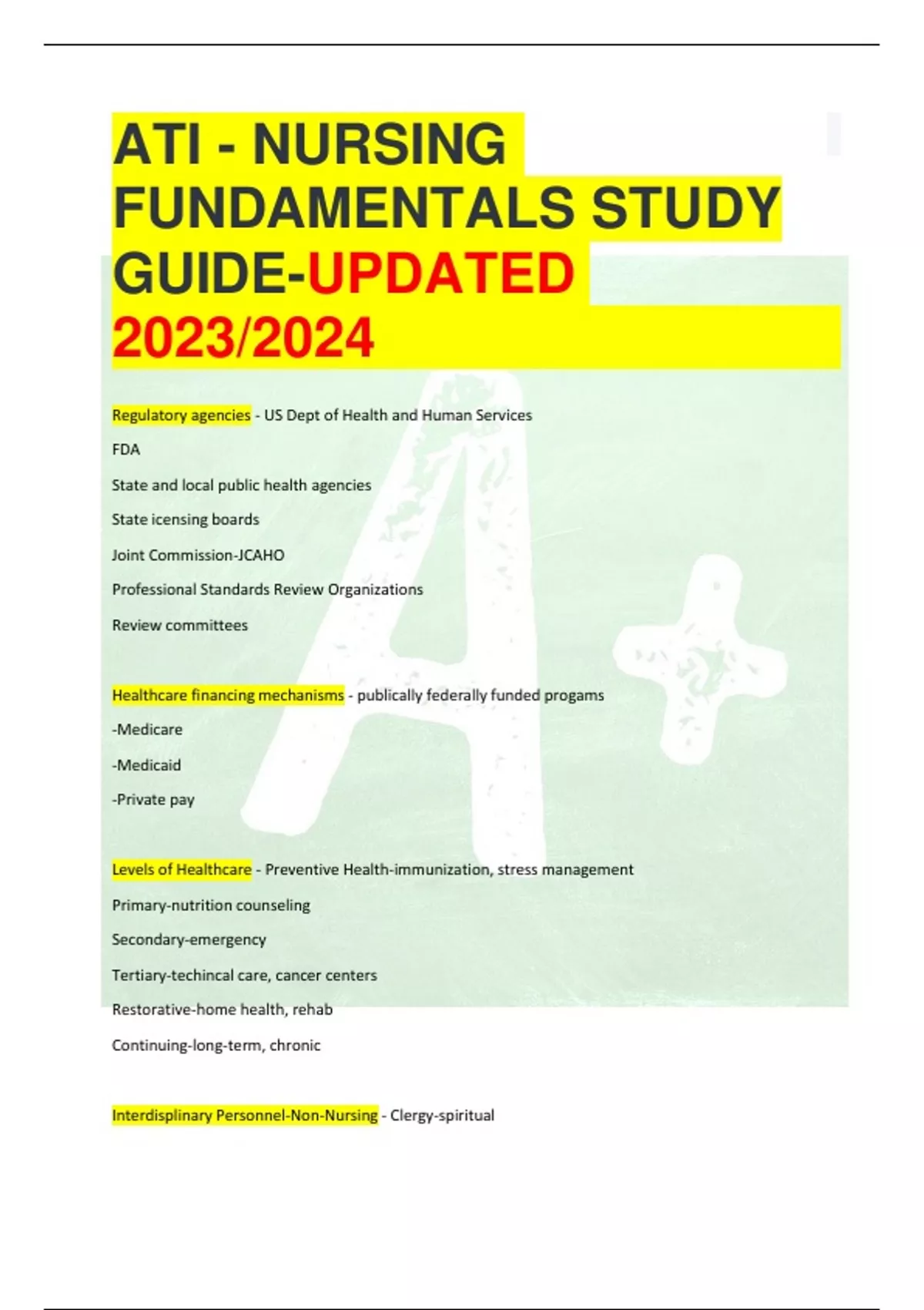 ATI - NURSING FUNDAMENTALS STUDY GUIDE-UPDATED 2023/2024