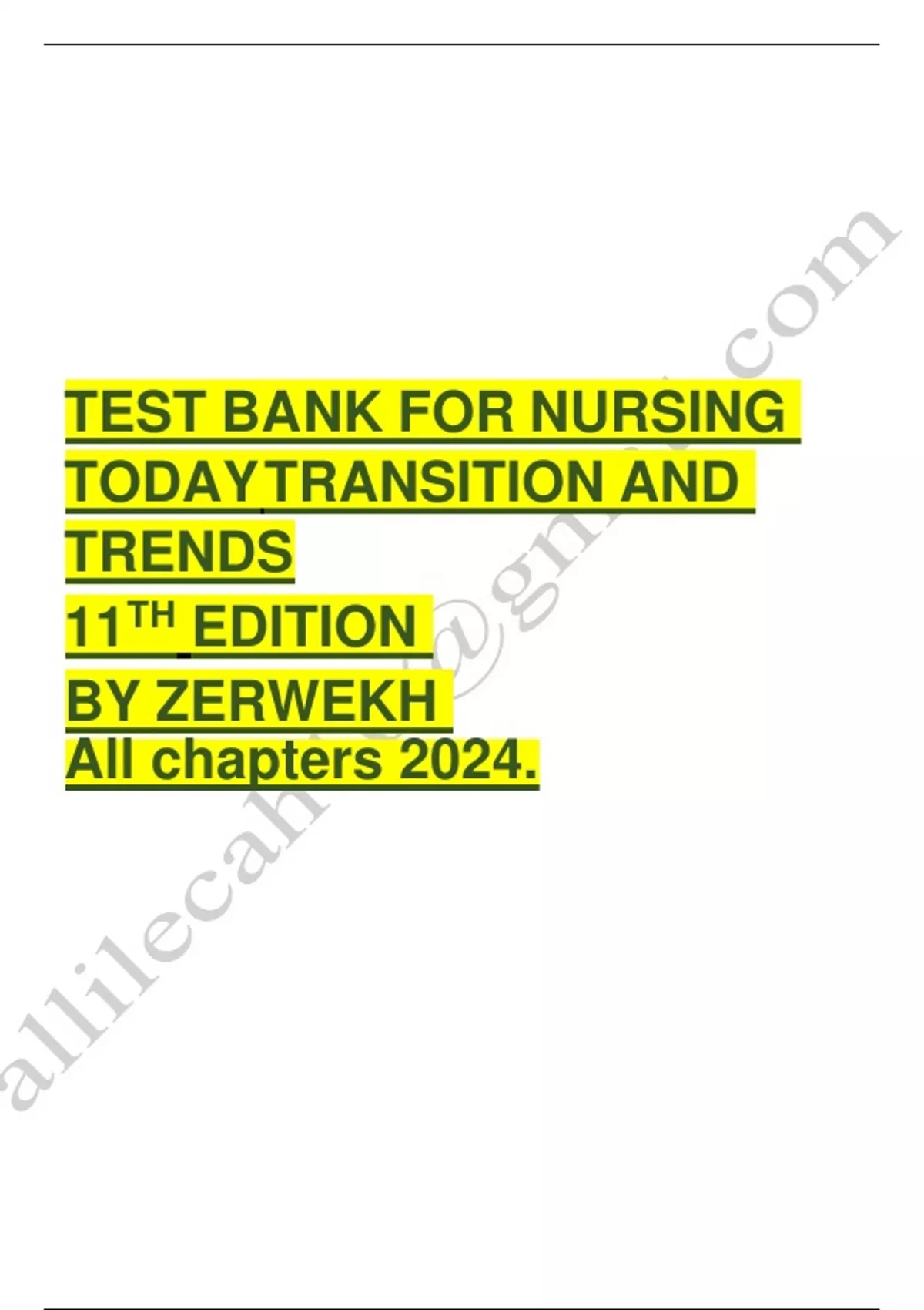 Test bank for nursing today transition and trends 11th edition by zerwekh all chapters Latest Update